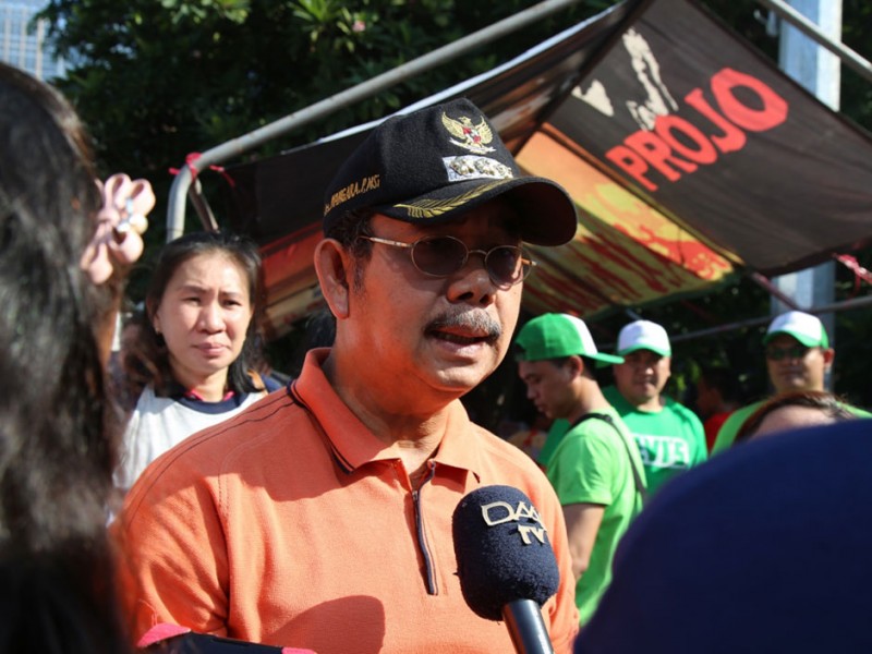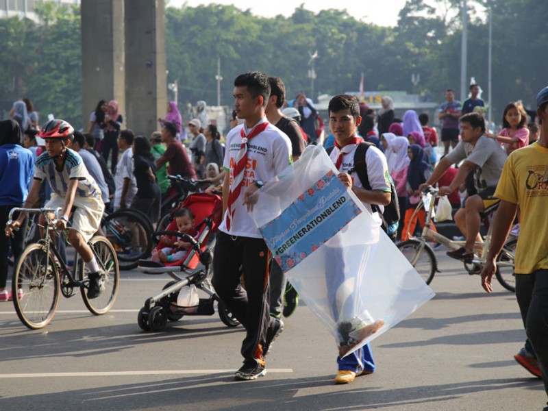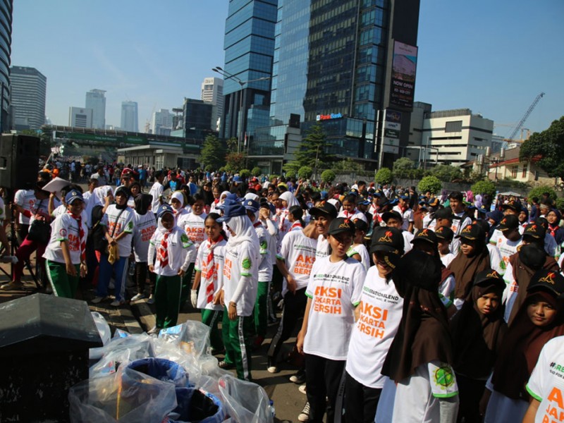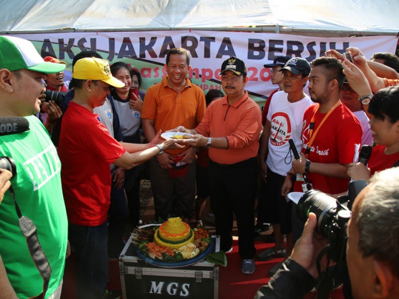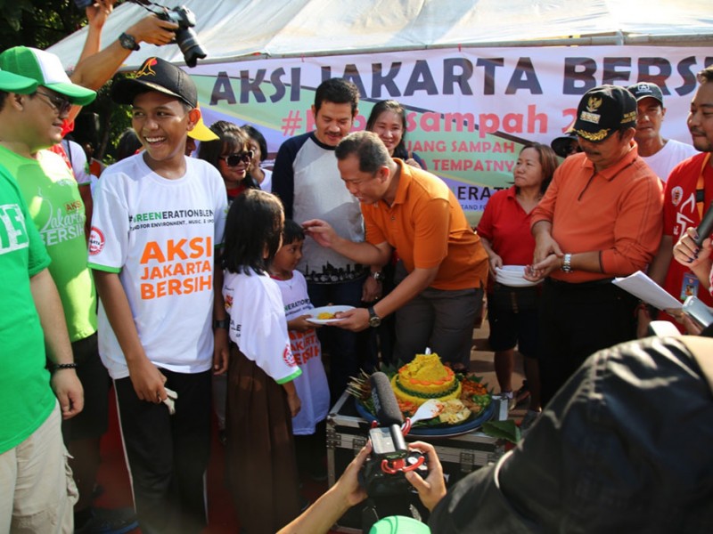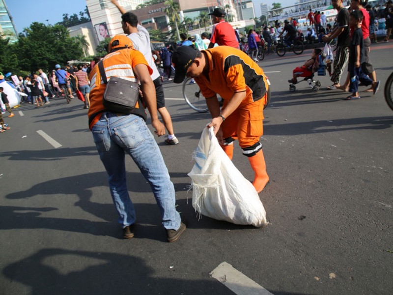 Wali Kota Jakarta Pusat, Mangara Pardede bersama Wakil Kepala Dinas Kebersihan DKI Jakarta, Ali Maulana Hakim menghadiri peringatan HUT ke-3 Komunitas Aksi Jakarta Bersih bertepatan dengan pelaksanaan Hari Bebas Kendaraan Bermotor (HBKB) di kawasan Bundaran HI, Jakarta Pusat, Minggu (14/2/2016). Dalam kesempatan tersebut dilakukan aksi pungut sampah dengan mengajak serta masyarakat. (Foto: Yopie/beritajakarta.com)