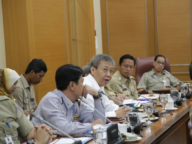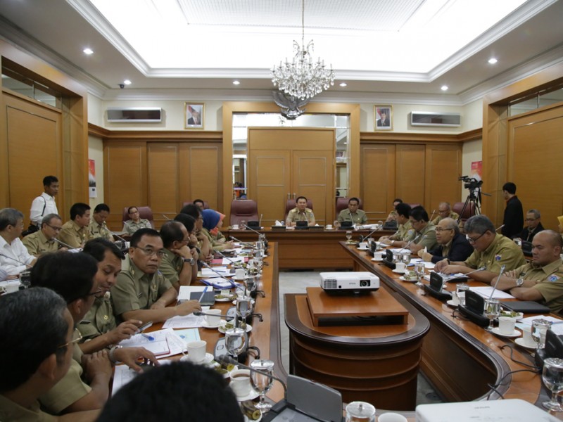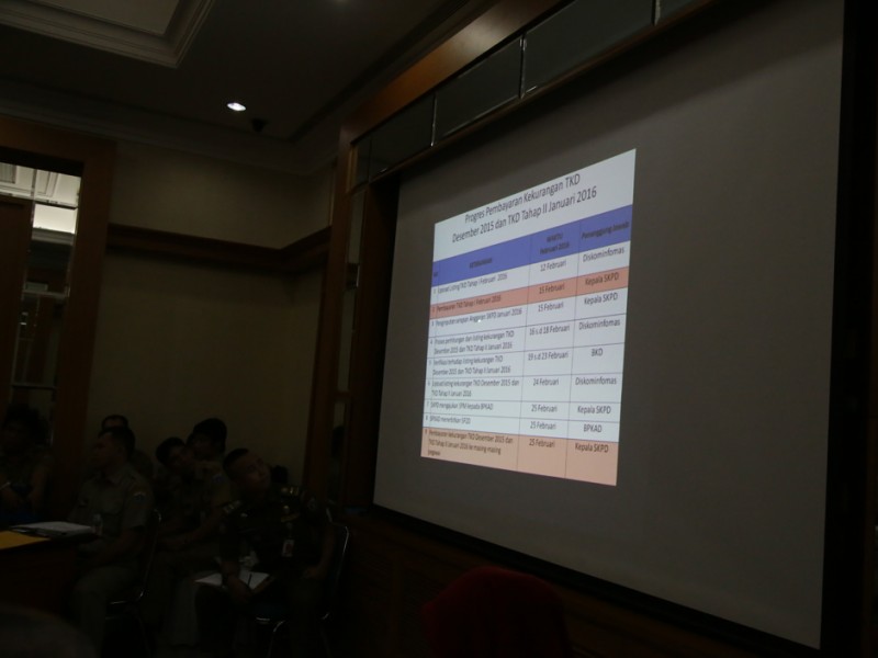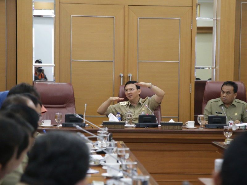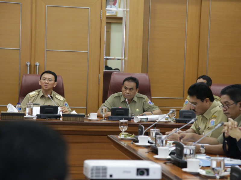 Gubernur DKI Jakarta, Basuki Tjahaja Purnama memimpin rapat bersama jajaran Satuan Kerja Perangkat Daerah (SKPD) di Balai Kota DKI Jakarta, Senin (15/2/2016).Rapat kali ini beragendakan paparan BKD DKI Jakarta terkait progres pembayaran kekurangan Tunjangan Kerja Daerah (TKD) Desember 2015 dan TKD Tahap II Januari 2016 serta rencana perluasan Terminal Ragunan.(Foto: Yopie/beritajakarta.com)