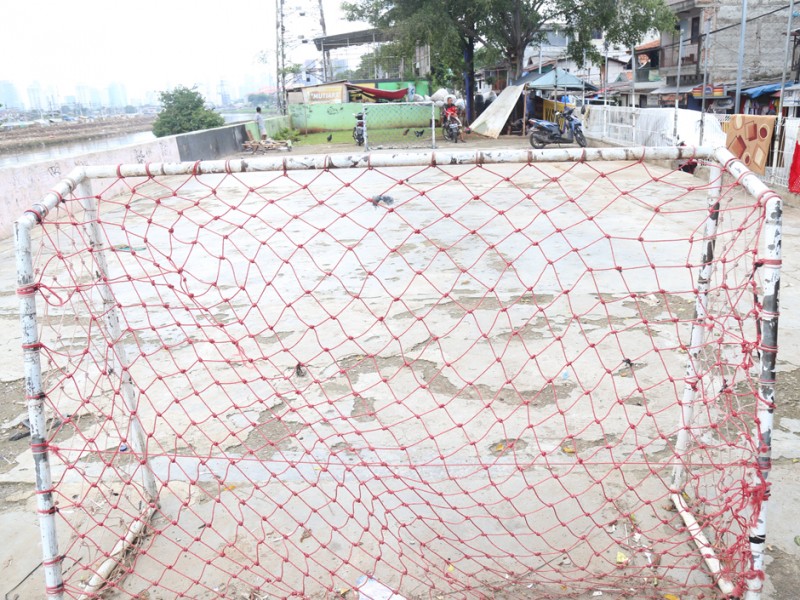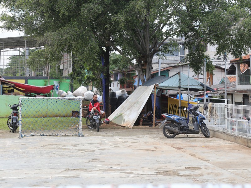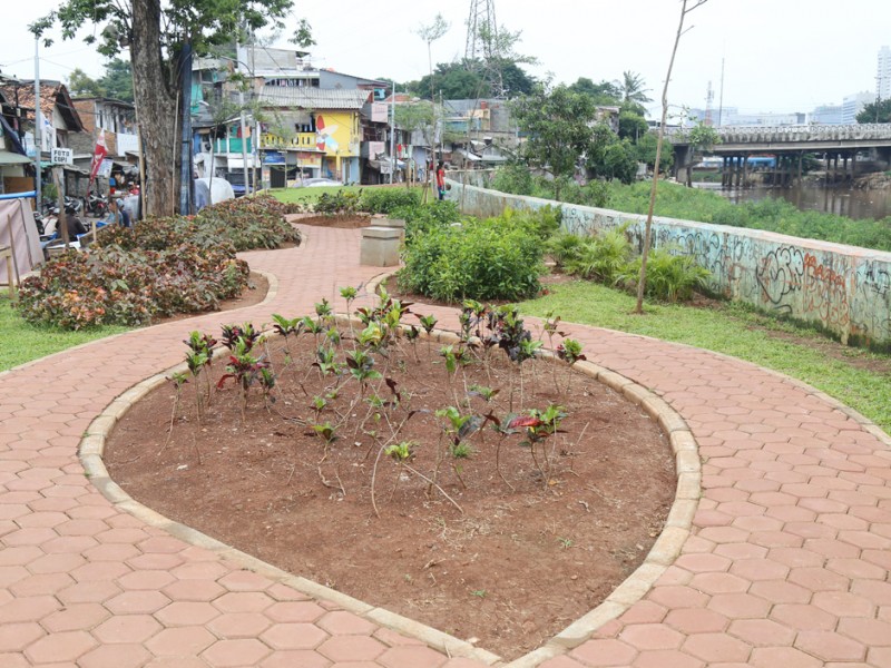 Taman Banjir Kanal Barat (BKB), di RW 01 Kelurahan Petamburan, Kecamatan Tanah Abang, Jakarta Pusat menjadi objek Vandalisme. Coretan cat semprot warnai tembok pembatas yang merupakan tanggul Kanal Banjir Barat. Selain itu terjadi keretakan pada lapangan Futsal dan lapangan tersebut dijadikan area parkir kendaraan. (Foto: Reza/beritajakarta.com)