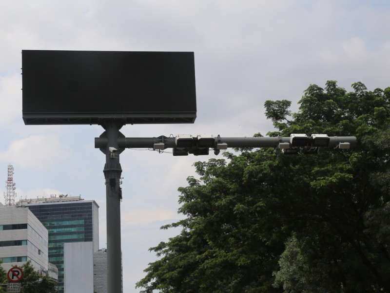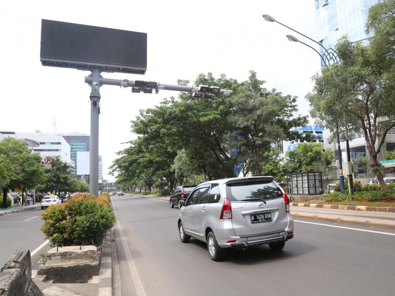 Pengendara mobil melewati mesin ERP Setiabudi