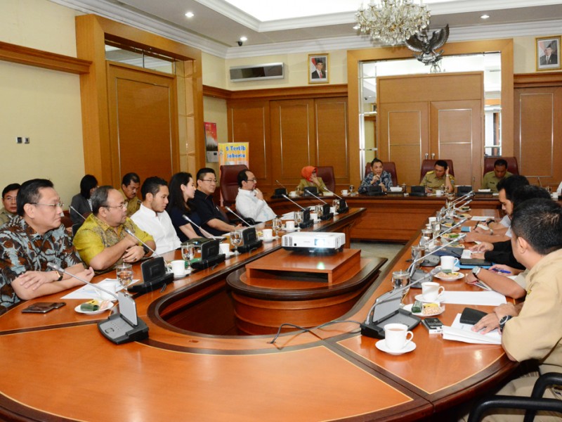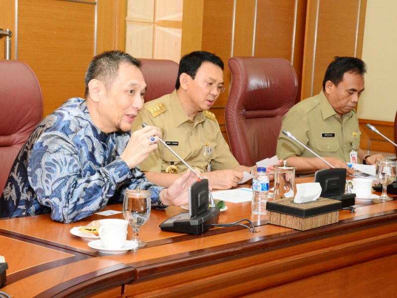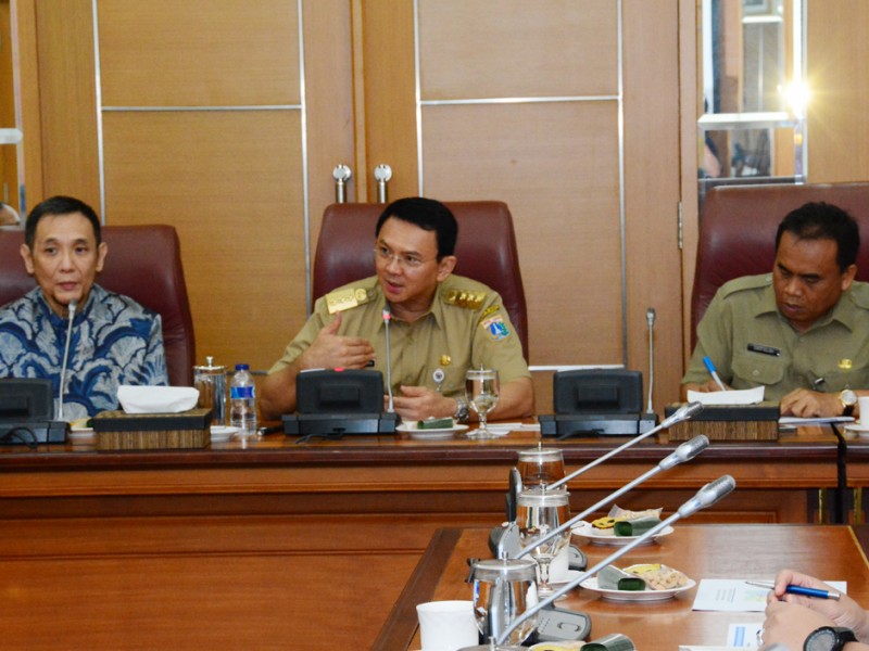 Gubernur DKI Jakarta, Basuki Tjahaja Purnama menerima jajaran Direksi PT. Citra Marga Nusaphala Persada, Tbk di Balai Kota DKI Jakarta, Selasa (16/2/2016). Pertemuan ini membahas rencanana pengambil alihan proyek enam ruas jalan tol yang saat ini di bawah kewenangan Kementerian Pekerjaan Umum dan Perumahan Rakyat (Kemenpu-Pera). Proyek enam ruas tol tersebut, akan diubah menjadi jalan arteri layang. Hadir dalam pertemuan ini Sekertaris Daerah Provinsi DKI Jakarta, Saefullah dan Kepala Badan Pengelola Keuangan Daerah DKI Jakarta, Heru Budi Hartono. (Foto: Yopie/beritajakarta.com)