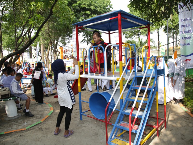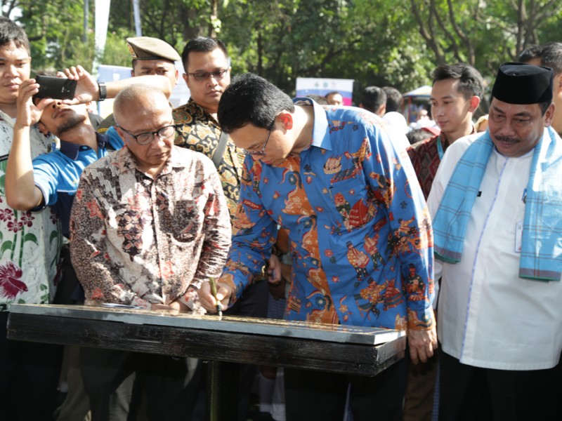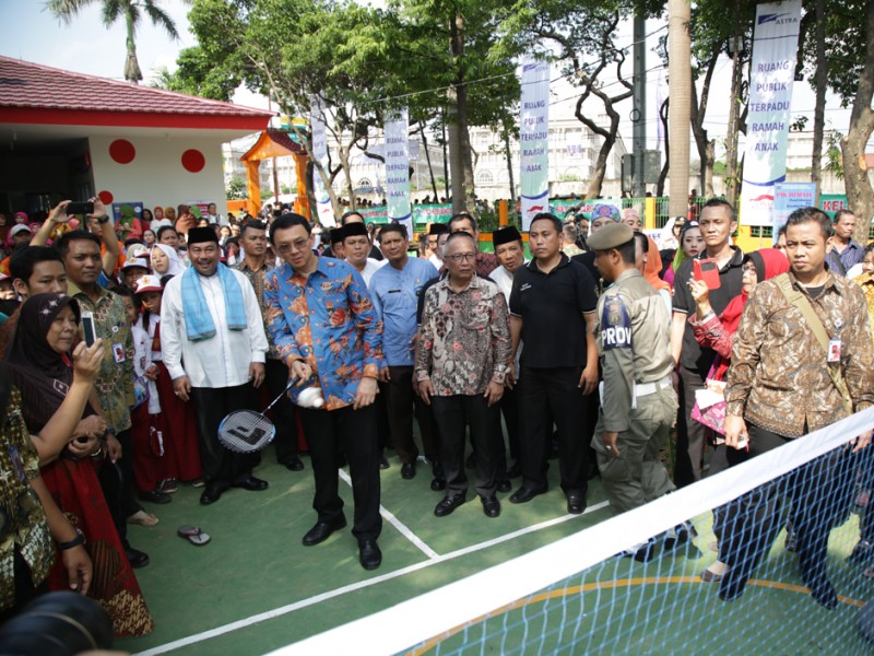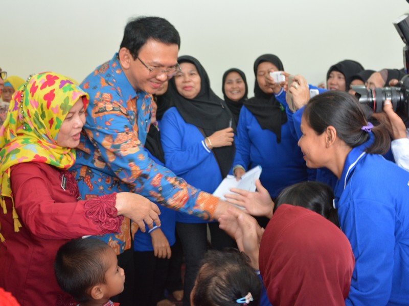 Gubernur DKI Jakarta Basuki Tjahaja Purnama meresmikan Ruang Publik Terpadu Ramah Anak (RPTRA) Cengkareng Timur Berseri, di Jalan Outer Ringrod, RT 12/11, Kelurahan Cengkareng Timur, Kecamatan Cengkareng, Jakarta Barat, Kamis (18/2/2016). Hadir dalam peresmian ini Ketua Tim Penggerak PKK DKI Jakarta Veronica Tjahaja Purnama dan Walikota Jakarta Barat Anas Effendi. Peresmian RPTRA ditandai dengan pembubuhan tanda tangan oleh Gubernur Provinsi DKI Jakarta Basuki Tjahaja Purnama pada prasasti RPTRA yang dilanjutkan dengan peninjauan RPTRA. RPTRA merupakan tempat interaksi warga dari berbagai umur serta berbagai kalangan. (Foto: Yopie/beritajakarta.com / Masrizal/Humas )