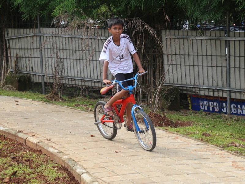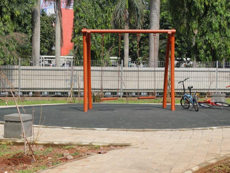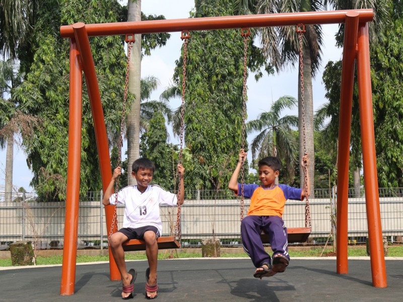 Sejumlah warga yang terdiri dari anak-anak mengunjungi dan memanfaakan fasilitas Taman Tanjung 2 di Jalan TB Simatupang, Kelurahan Tanjung Barat, Jakarta Selatan, Kamis (18/2/2016). Taman seluas 2.281m2 ini merupakan salah satu RTH yang diresmikan oleh Gubernur DKI Jakarta, Basuki Tjahaja Purnama pada tanggal 9 Febuari lalu. (Foto : Reza/beritajakarta.com)
