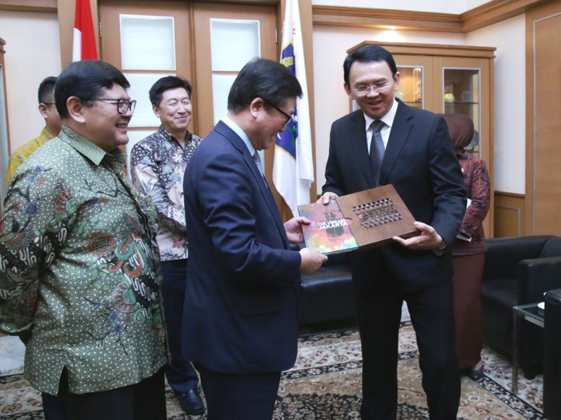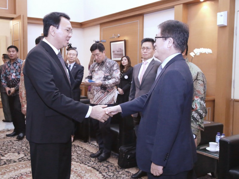 Gubernur DKI Jakarta, Basuki Tjahaja Purnama menerima kunjungan President of Asian Equestrian Federation (AEF) dan Korean Equestrian Federation (KEF), Sang Jin di Balai Kota Jakarta, Jumat (19/2/2016). Kunjungan ini terkait rencana dukungan dan kerjasama dalam mempersiapkan penyelenggaraan Asian Games 2018. (Foto: Yopie/beritajakarta.com)