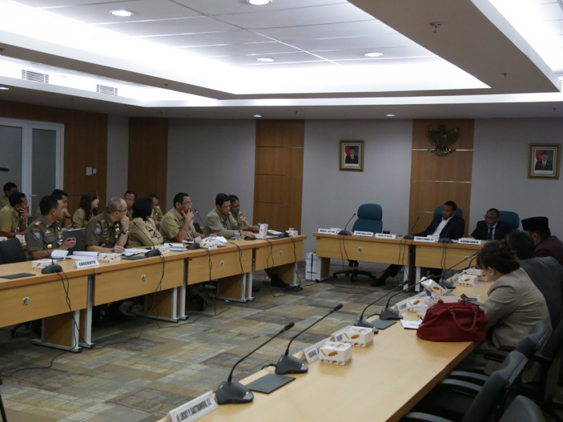 Ketua Komisi A DPRD DKI Jakarta, Riano Ahmad melakukan rapat koordinasi (rakor) dengan Pemerintah Provinsi (Pemprov) DKI Jakarta terkait penertiban kawasan Kalijodo di Ruang Rapat Komisi A, Gedung DPRD DKI Jakarta, Senin (22/2/2016). Hadir dalam rapat ini Wali Kota Jakarta Utara, Rustam Effendi, Wali Kota Jakarta Barat, Anas Effendi, Kepala Dinas Perumahan dan Gedung Pemda DKI Jakarta, Ika Lestari Adji dan Wakil Kasatpol PP DKI Jakarta, Jupan Royter Tampubolon.(Foto: Yopie/beritajakarta.com)