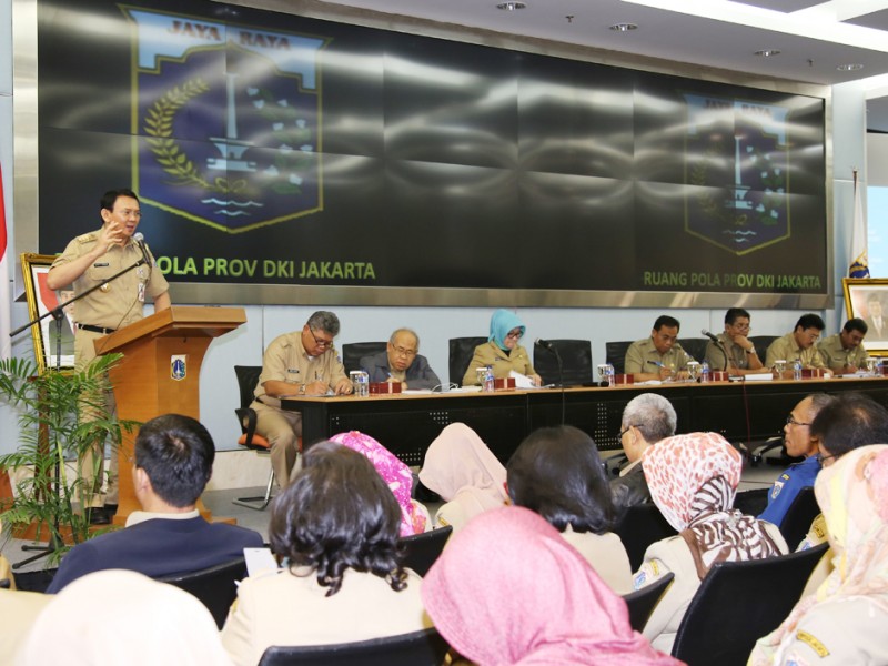 Gubernur DKI Jakarta, basuki Tjahaja Purnama memberikan pengarahan kepada para kepala SKPD tentang Penyusunan RKPD Tahun 2017 di Ruang Pola Bappeda, Blok G Balai Kota Jakarta, Selasa (23/2/2016). Dalam kesempatan ini Kepala Bappeda DKI Jakarta, Tuty Kusumawati turut menyampaikan laporan perihal penyusunan RKPD Tahun 2017. (Foto: Yopie/beritajakarta.com)