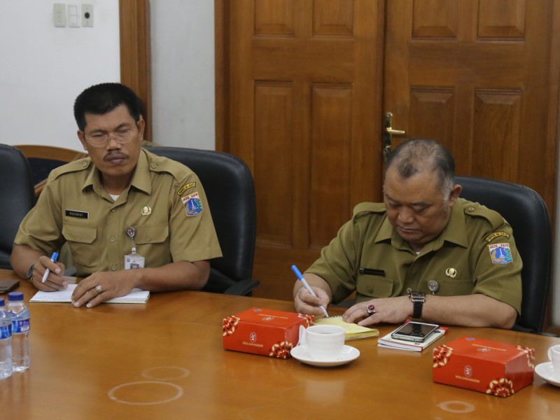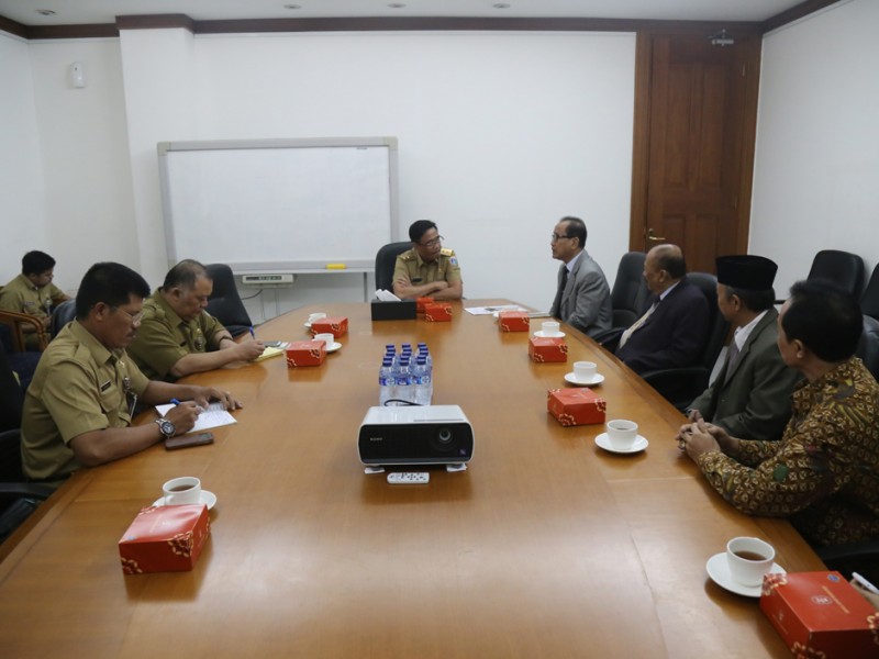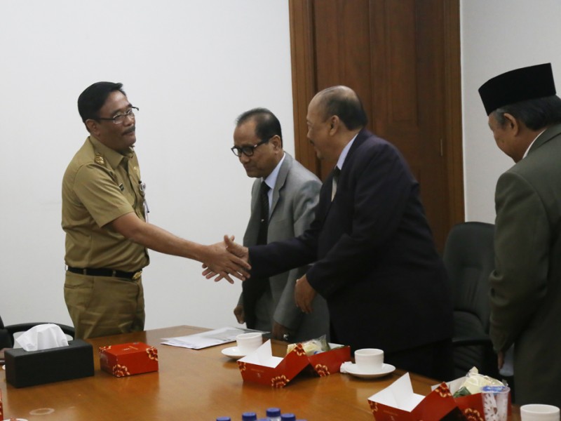 Wakil Gubernur DKI Jakarta, Djarot Saiful Hidayat bersama Forum Intelektual Indonesia (FII) membahas pelaksanaan Konferensi Guru Besar Indonesia ke-7 di Balai Kota DKI Jakarta, Selasa (23/2/2016). Konferensi Guru Besar Indonesia ke-7 direncanakan berlangsung di Jakarta Juni hingga Juli 2016 mendatang. Hadir dalam pertemuan ini Ketua Dewan Penasehat Forum Intelektual Indonesia, Achmad Zaini, Kepala Bidang SMA Dinas Pendidikan DKI Jakarta, Fathurin Zen dan Sekretaris Jendral FII, Sutjipto Wirosari. (Foto: Reza/beritajakarta.com)