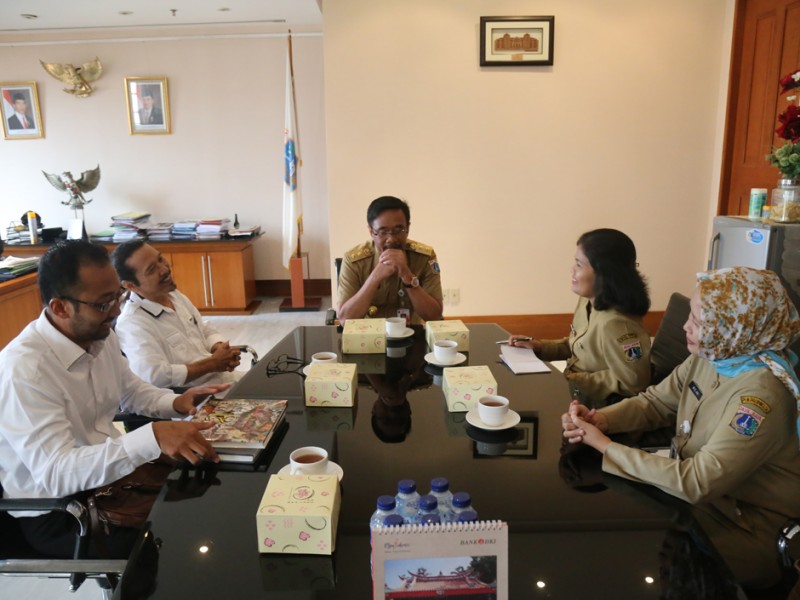 Wakil Gubernur DKI Jakarta, Djarot Saiful Hidayat menerima Seniman Cak Kandar perihal perencanaan membuka pameran Lukisan di Kota Tua, Selasa (23/02/2016). Hadir dalam pertemuan ini Kepala Satuan Pelaksana Edukasi dan Informasi Unit Pengelola Museum Kesejarahan Jakarta, Esti Utami, Perwakilan Balai Budaya, Yogha Syahbana dan Perwakilan Dinas Pariwisata dan Kebudayaan, Mis Ari. (Foto: Reza/beritajakarta.com)