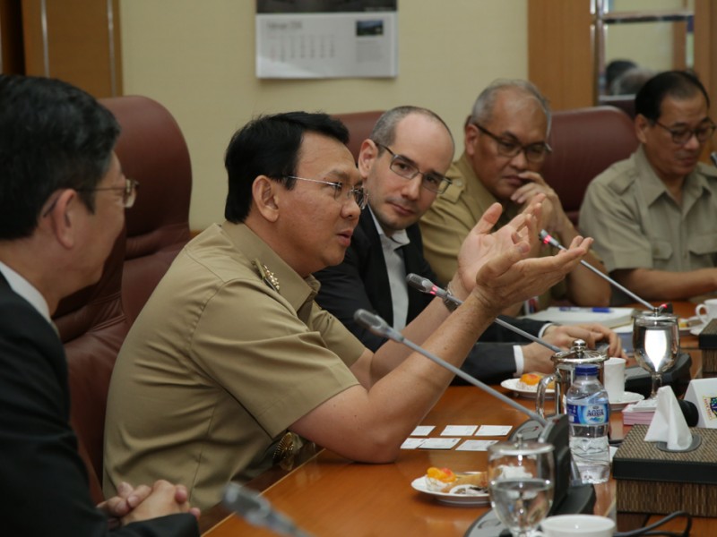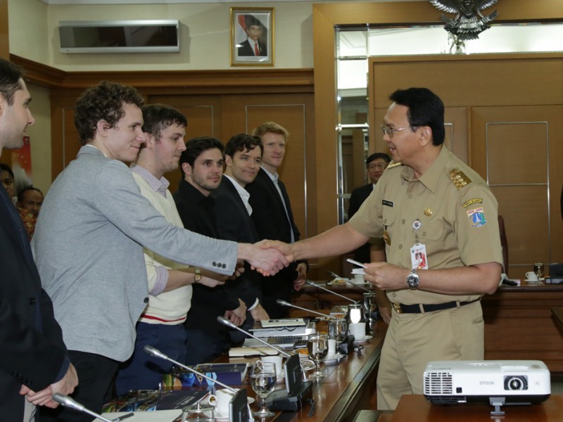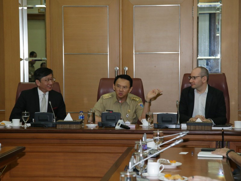 Gubernur DKI Jakarta, Basuki Tjahaja Purnama menerima kunjungan mahasiswa Program Urban Design Harvard University Graduate School of Design, di Balai Kota Jakarta, Selasa (23/2/2016).Pertemuan ini dihadiri Deputi Gubernur bidang Industri, Perdagangan dan Transportasi DKI Jakarta, Sutanto Soehodho dan Deputi Gubernur Bidang Tata Ruang dan Lingkungan Hidup DKI Jakarta, Oswar Muadzin Mungkasa. (Foto: Yopie/beritajakarta.com)