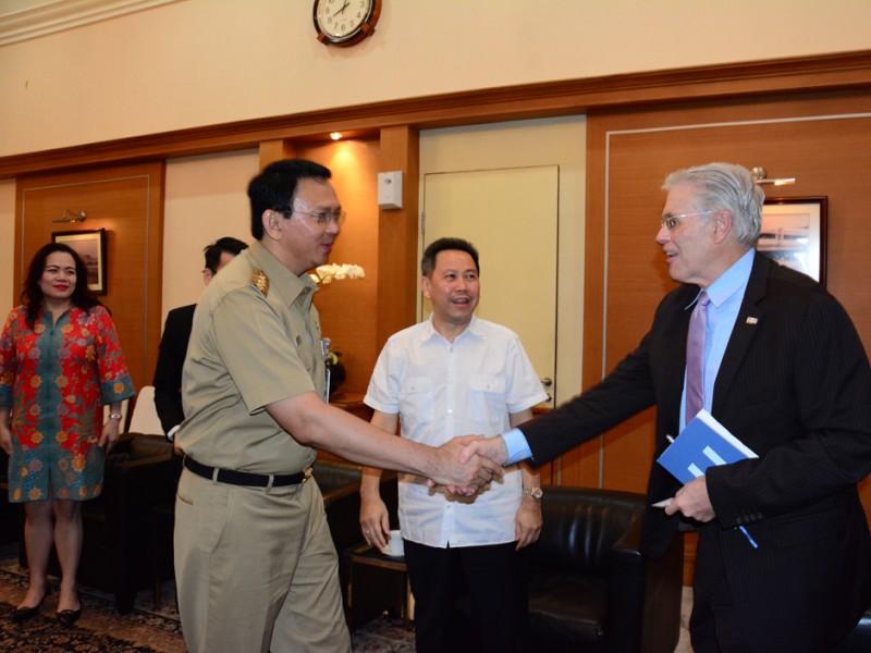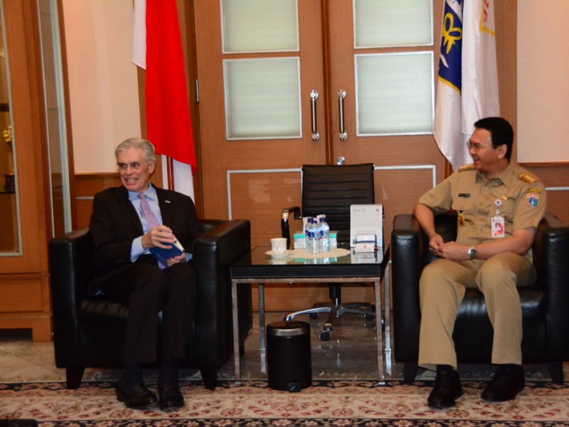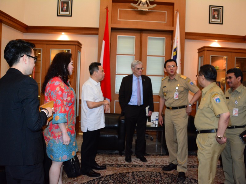 Gubernur DKI Jakarta, Basuki Tjahaja Purnama menerima Direktur University of California at Los Angeles (UCLA), Prof. Dr. Thomas Coates, di Balai Kota Jakarta, Selasa (23/2). Kedatangan Direktur UCLA ini dalam rangka membahas kemungkinan kerjasama untuk meningkatkan kesehatan masyarakat dan kualitas dokter di Jakarta dengan memberikan solusi ataupun sistem yang sudah diterapkan UCLA disejumlah negara lainya. Turut hadir dalam pertemuan ini yakni Asisten Kesejahteraan Masyarakat DKI Jakarta, Fatahillah berserta Kepala Dinas Kesehatan DKI Jakarta, Koesmedi.(Foto: Yopie/beritajakarta.com)