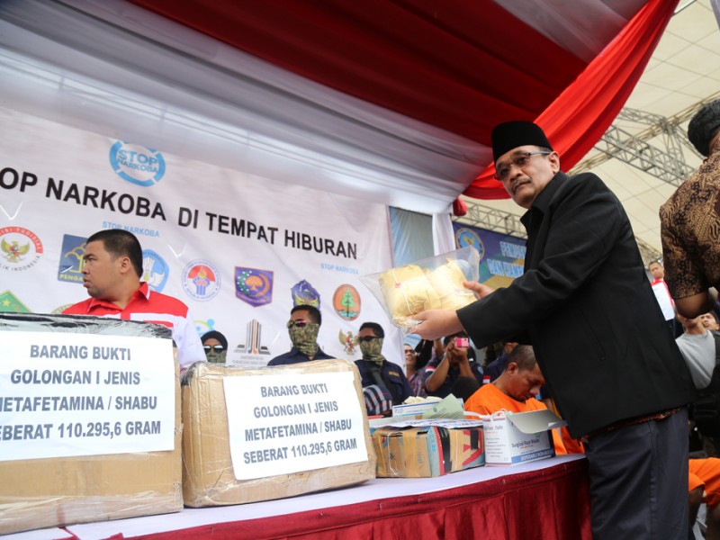 Pemerintah Provinsi DKI Jakarta mendukung Badan Narkotika Nasional melakukan pemusnahan 120Kg sabu sabu sabagai momen Kampanye Stop Narkoba di Tempat Hiburan di Lapangan Parkir, Jalan Cengkeh, Pinangsia, Taman Sari, Jakarta Barat, Jumat (26/02/2016). (Foto: Reza/beritajakarta.com)