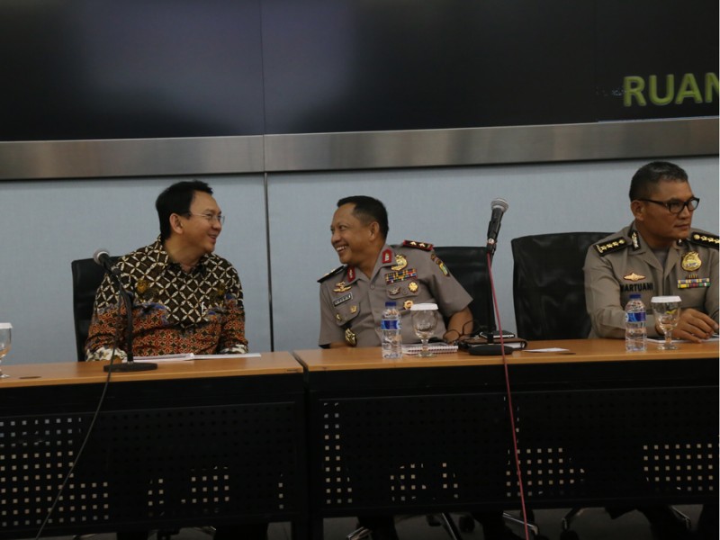 Kapolda Metro Jaya, Irjen Tito Karnavian, Sekretaris Daerah Provinsi DKI Jakarta, Saefullah, Wali KotaJakarta Barat, Anas Effendi, Wali Kota Jakarta Utara, Rustam Effendi dan Kepala Satpol PP DKI Jakarta, Jupan Royter.(Foto: Reza/beritajakarta.com)
