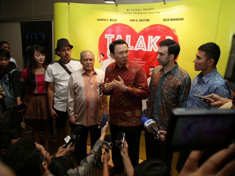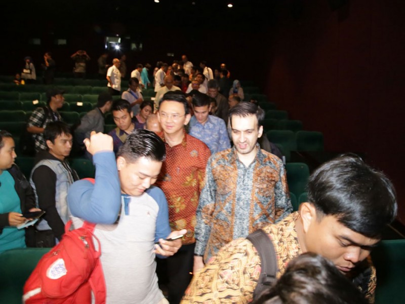 Gubernur DKI Jakarta Basuki Tjahaja Purnama beserta sejumlah Kepala Satuan Kerja Perangkat Daerah (SKPD) menonton Film Talak Tiga di Djakarta Theater, Jalan M.H Thamrin, Menteng, Jakarta Pusat, Kamis malam, (25/2/2016). Film yang disutradari Hanung Bramantyo ini membawa pesan moral yang perlu diajarkan orang tua kepada anak-anaknya.(Foto: Yopie/beritajakarta.com)