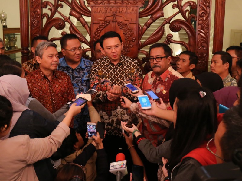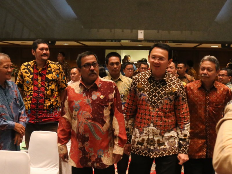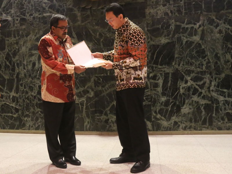 Gubernur DKI Jakarta, Basuki Tjahaja Purnama menerima ajuan permohonan bantuan dari Badan Kerja Sama Pembangunan (BKSP) Jabodetabekjur sebesar Rp 4,8 Triliun kepada Pemerintah Provinsi DKI Jakarta pada tahun anggaran 2017 mendatang,di Balai Kota DKI Jakarta, Jumat (26/02/2016).(Foto: Reza/beritajakarta.com)