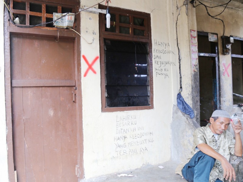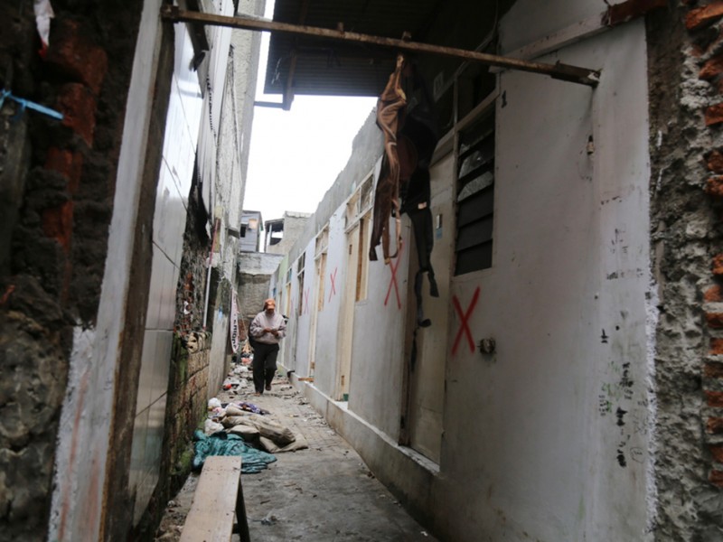 Pasca Surat Peringatan (SP) 1 dan Surat Peringatan (SP) 2 Sabtu (27/2), aktifitas warga Kalijodo tampak sepi, aktifitas warga hanya terlihat disejumlah bangunan yang sedang dibongkar untuk memilah material-material bangunan yang masih bisa dimanfaatkan. Kalijodo akan menjadi kenangan bagi warga setempat dan akan berganti wajah dalam pekan-pekan mendatang. (Foto: Reza/beritajakarta.com)