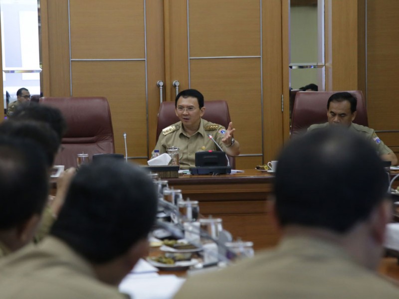 Gubernur DKI Jakarta, Basuki Tjahaja Purnama memimpin rapat pimpinan (Rapim) bersama jajaran Satuan Kerja Perangkat Daerah (SKPD) di Balai Kota DKI Jakarta, Senin (29/2). (Foto: Yopie/Beritajakarta.com)