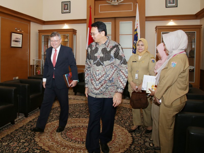 Gubernur DKI Jakarta, Basuki Tjahaja Purnama menerima kunjungan Duta Besar Brasil untuk Indonesia, Rubem Barbosa di Balai Kota DKI Jakarta, Selasa (1/3/2016). Dalam pertemuan Basuki membahas penjajakan kerjasama antara DKI Jakarta dengan kota-kota di Brasil.