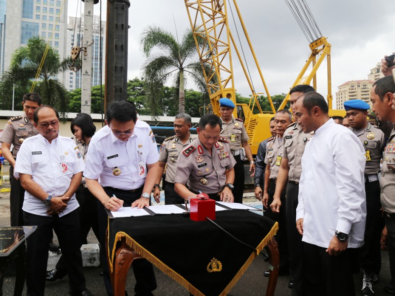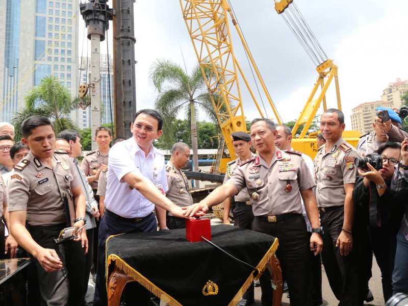 Gubernur DKI Jakarta, Basuki Tjahaja Purnama bersama Kapolda Metro Jaya, Irjen Pol Tito Karnavian melakukan groundbreaking pembangunan lapangan parkir Polda Metro Jaya, di Jalan Gatot Subroto, Kebayoran Baru, Jakarta Selatan Rabu (02/03). (Foto: Reza/Beritajakarta.com)