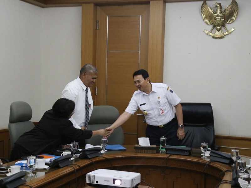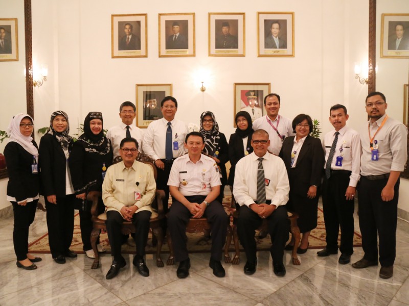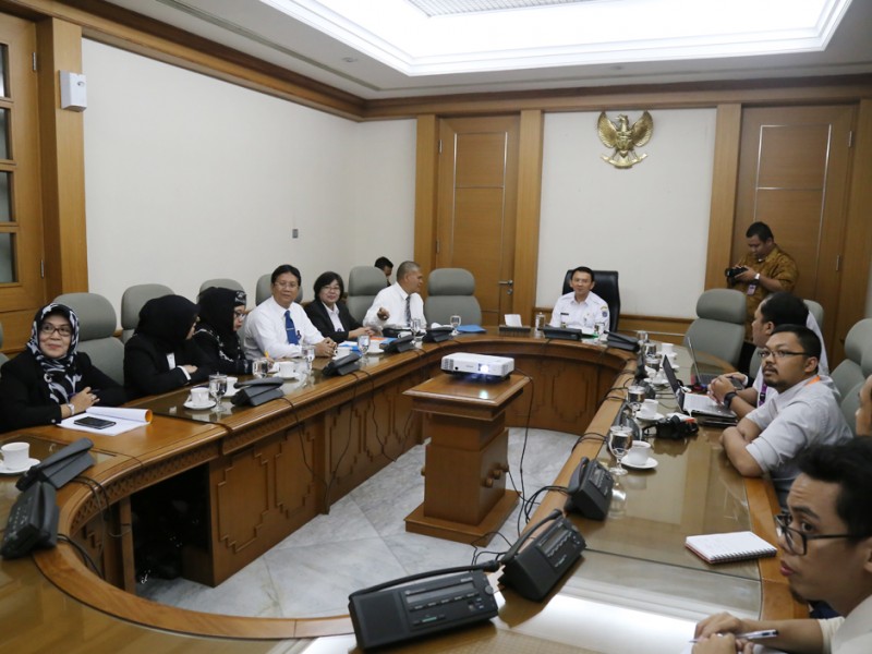 Gubernur DKI Jakarta, Basuki Tjahaja Purnama menerima jajaran dirksi RSUD Budhi Asih di Balai Kota DKI Jakarta, Rabu (2/3). Kedatangan Jajaran direksi ini terkait Peresmian RSUD Budhi Asih yang akan diresmikan 11 Maret 2016 mendatang. Hadir dalam pertemuan ini Kepala Dinas Kesehatan DKI Jakarta, Koesmedi Priharto, Direktur RSUD Budhi Asih, dr. Ida Bagus Nyoman Banjar beserta jajaran. (Reza/beritajakarta.com)