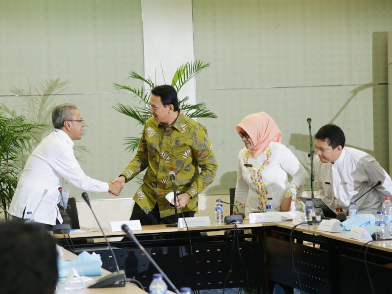 Gubernur DKI Jakarta, Basuki T Purnama menghadiri dialog High Level Meeting on Subsidence – Badan Litbang Kementerian Pekerjaan Umum dan Perumahan Rakyat yang bertempat di Balaikota DKI Jakarta, Kamis (3/3). High Level Meeting on Subsidence adalah bentuk kerjasama antara Pemprov DKI Jakarta dengan Badan Litbang Kementerian Pekerjaan Umum dan Perumahan Rakyat dalam membahas permasalahan penurunan permukaan tanah khususnya di Jakarta. (Foto: Yopie/beritajakarta.com)