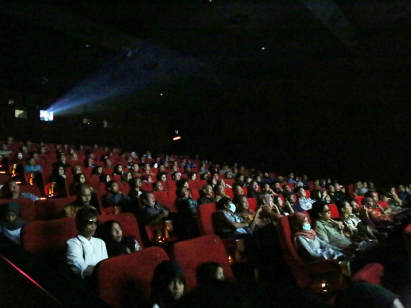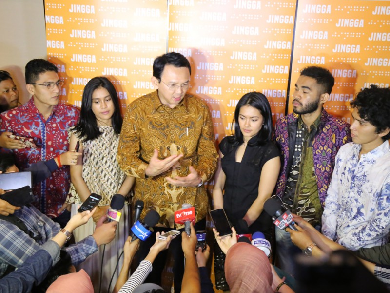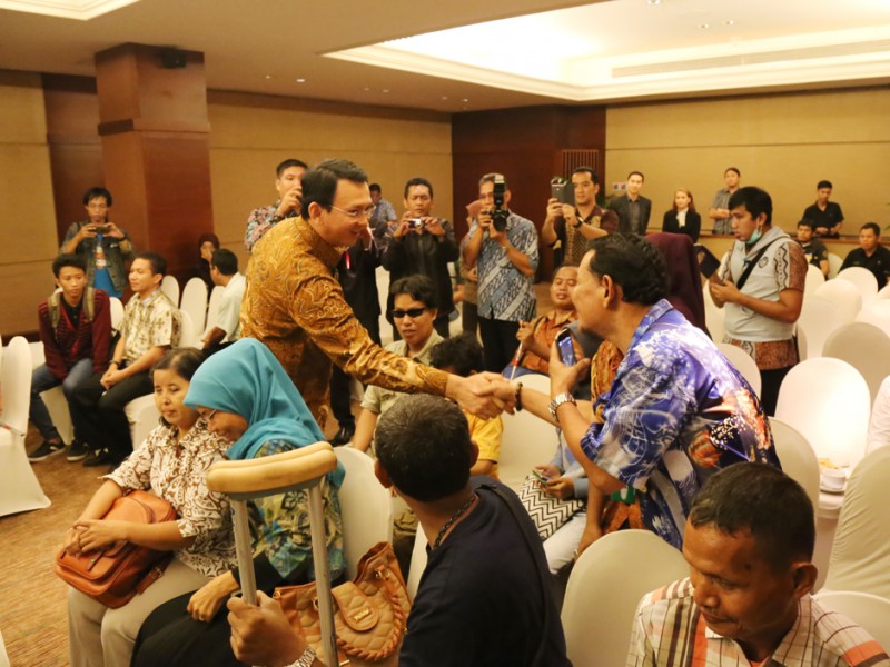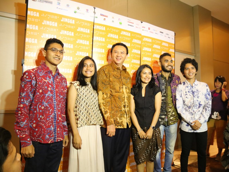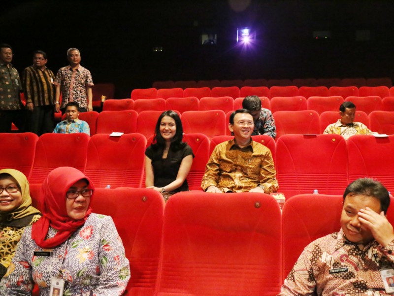 Gubernur DKI Jakarta, Basuki Tjahaja Purnama, mengajak ratusan difabel nonton bareng (Nobar) film Jingga di Djakarta Theater, Jalan M.H Thamrin, Menteng, Jakarta Pusat, Jumat ( 4/3). Film berjenis drama ini menceritakan kisah empat remaja tunanetra yang natinya akan membentuk sebuah grup musik dan menyiapkan rekaman untuk sebuah kompetisi musik. (Foto: Reza/Beritajakarta.com)