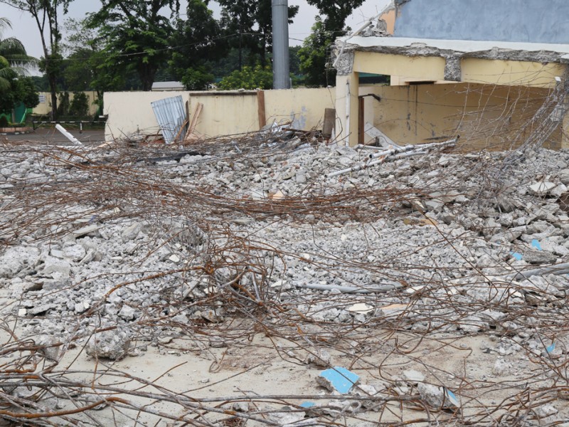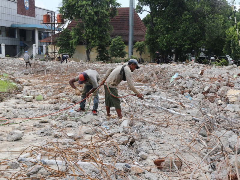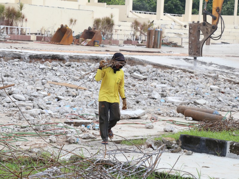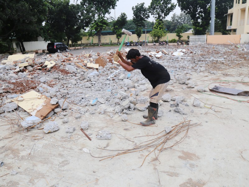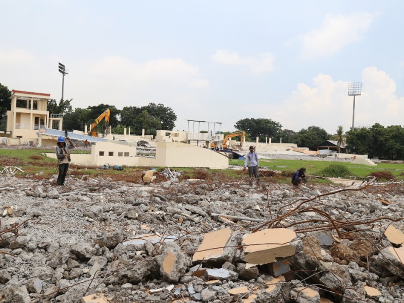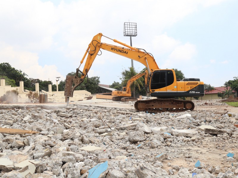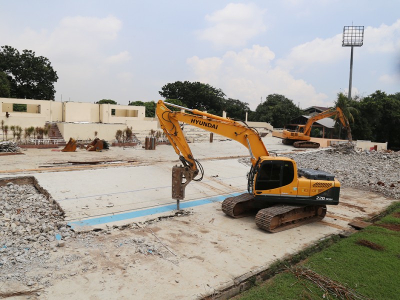 Pembangunan Velodrome Rawamangun dimulai, sejumlah alat berat tampak mulai melakukan pembongkaran bangunan Senin (7/3). Velodrome diproyesikan untuk perhelatan Asian Games 2018 mendatang. (Foto: Reza/beritajakarta.com)