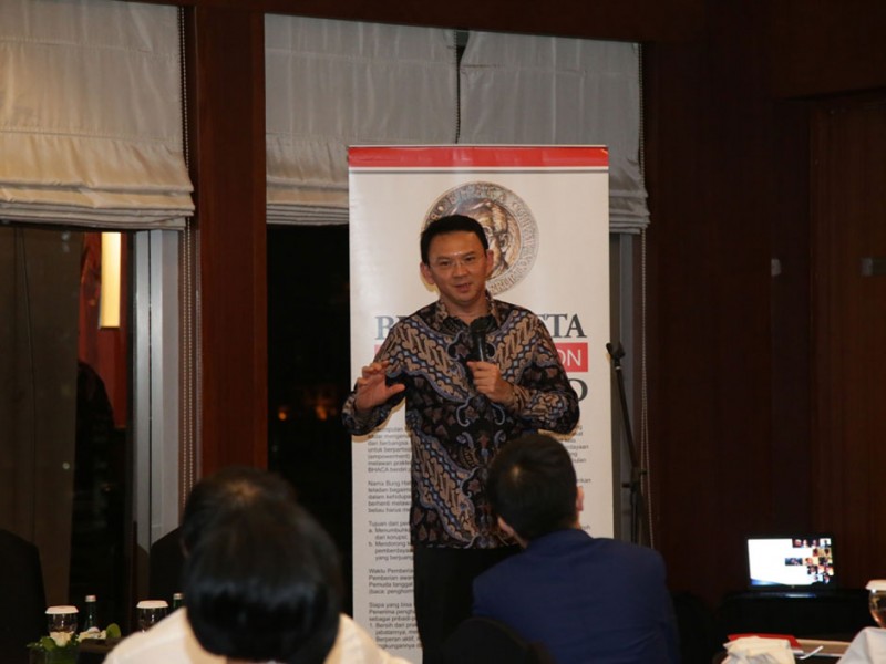 Gubernur DKI Jakarta, Basuki Tjahaja Purnama mendukung Bung Hatta Anti Coruption Award (BHACA). Menurutnya, penghargaan antikorupsi bisa menyadarkan masyarakat bahwa masih banyak pejabat publik yang jujur dan mau bekerja keras. Demikian ditegaskan Basuki saat menghadiri makan malam bersama perkumpulan Bung Hatta Anti Corruption Award di Kawasan SCBD Sudirman, Jakarta Selatan, Senin (7/3/2016).(Foto: Yopie/beritajakarta.com)