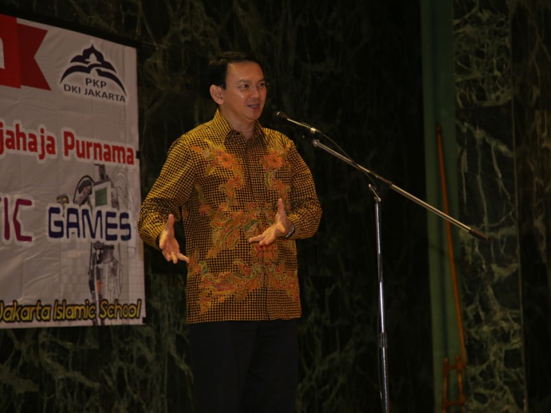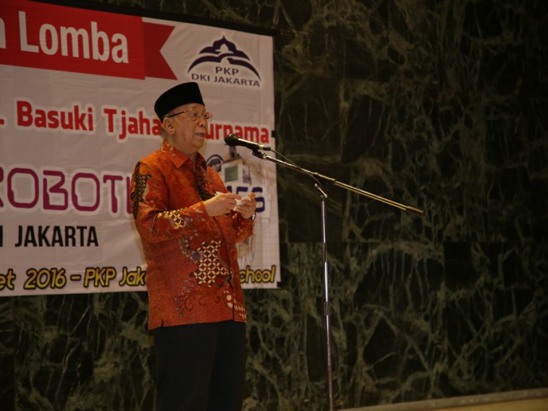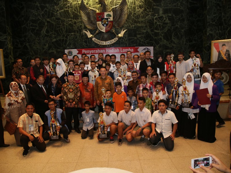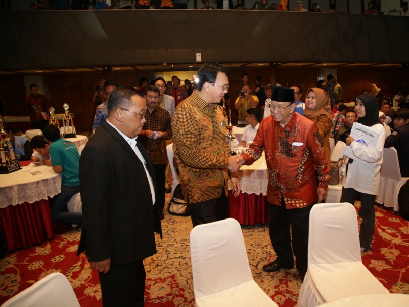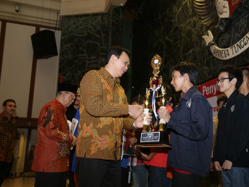 Gubernur DKI Jakarta, Basuki T Purnama menyerahkan Piala kepada pemenang Lomba International Robotic Game (IRG) Piala Gubernur DKI Jakarta di Balai Kota Jakarta, Selasa (8/3) . (Foto: Yopie/beritajakarta.com)