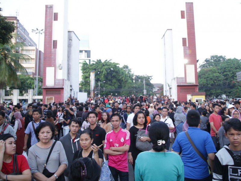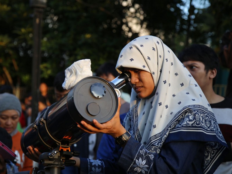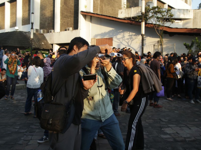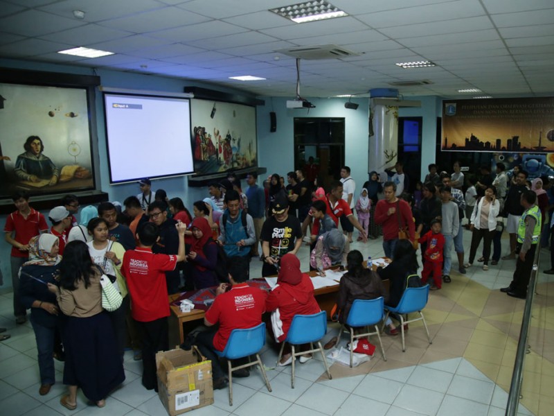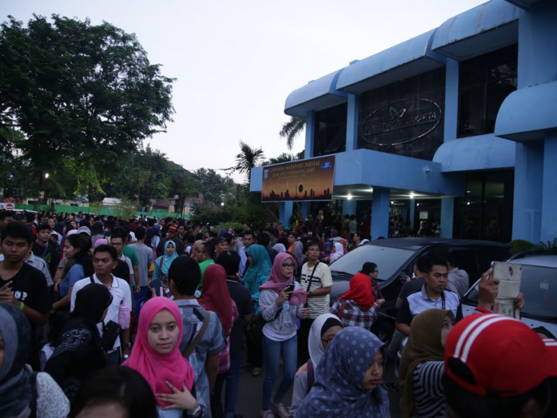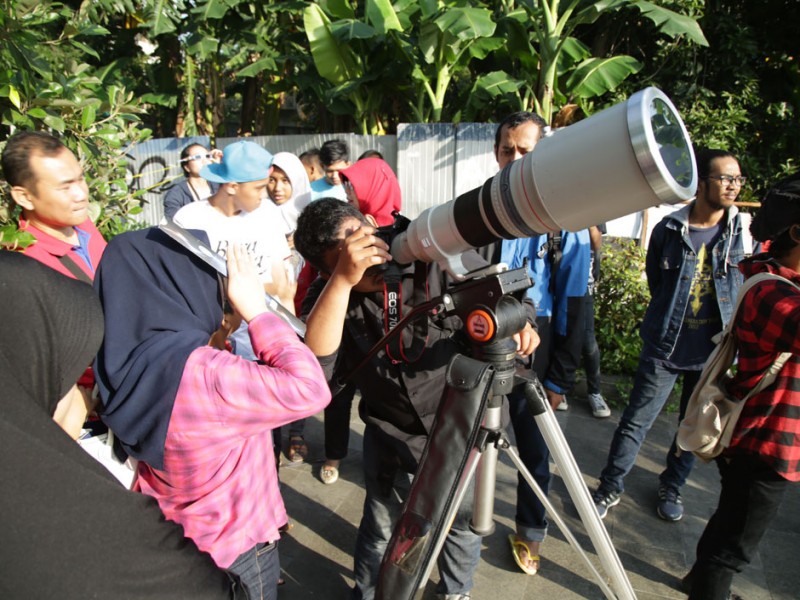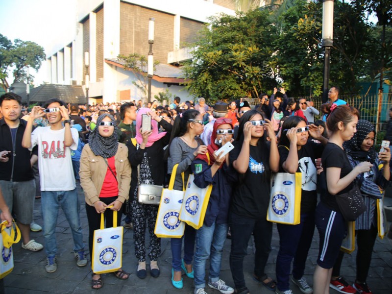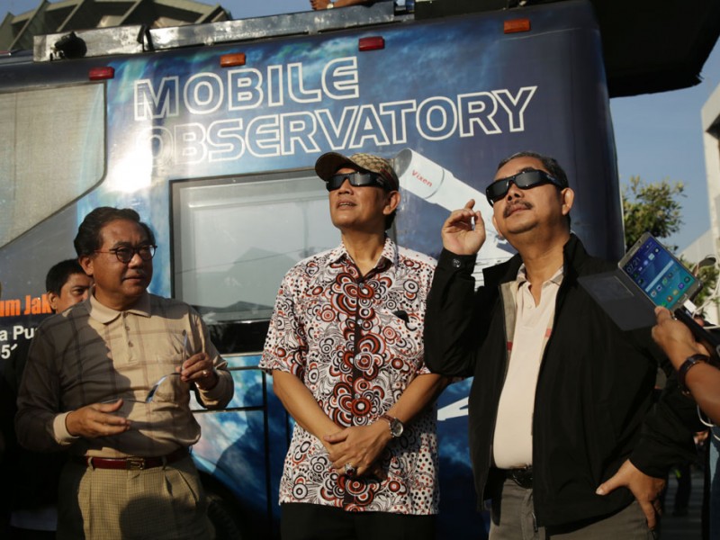 Ribuan warga memadati Planetarium dan Observatorium Dinas Pendidikan DKI Jakarta,di Taman Ismail Marzuki (TIM), Jakarta Pusat, Rabu (9/3). Ribuan warga berdatangan untuk menyaksikan fenomena alam Gerhana Matahari Total (GMT). Turut hadir dlam kegiatan ini Wali Kota Jakarta Pusat, Mangara Pardede bersama kepala Dinas Pendidikan DKI, Sopan Adrianto. (Foto: Yopie/Beritajakarta.com)