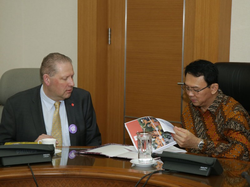 Gubernur DKI Jakarta, Basuki T Purnama menerima Executive Director Alzheimer’s Disease International, Marc Wortman di Balai Kota Jakarta Jumat (11/3). Pertemuan yang turut dihadiri Asisten Bidang Kesejahteraan Masyarakat Sekda Prov. DKI Jakarta, Fatahillah dan Kepala Biro Kesejahteraan Sosial Sekretaris Daerah Provinis DKI Jakarta, Sri Hari Jogja(Foto: Yopie/Beritajakarta.com)