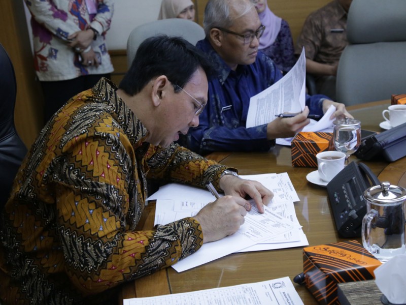 Gubernur DKI Jakarta, Basuki T Purnama memimpin rapat Badan Koordinasi Penataan Ruang Daerah (BKPRD) Provinsi DKI Jakarta, di Balai Kota DKI Jakarta, Jumat (11/3). Turut hadir dalam rapat rutin BKPRD Deputi Gubernur Bidang Tata Ruang dan Lingkungan Hidup DKI Jakarta, Oswar Muadzin Ilhamd dan Kepala Badan Perencana Pembangunan Daerah DKI Jakarta, Tuty Kusumawati beserta jajaran SKPD terkait. (Foto: Yopie/Beritajakarta.com)