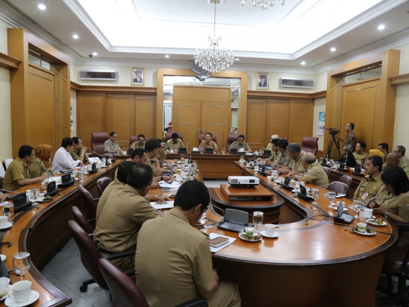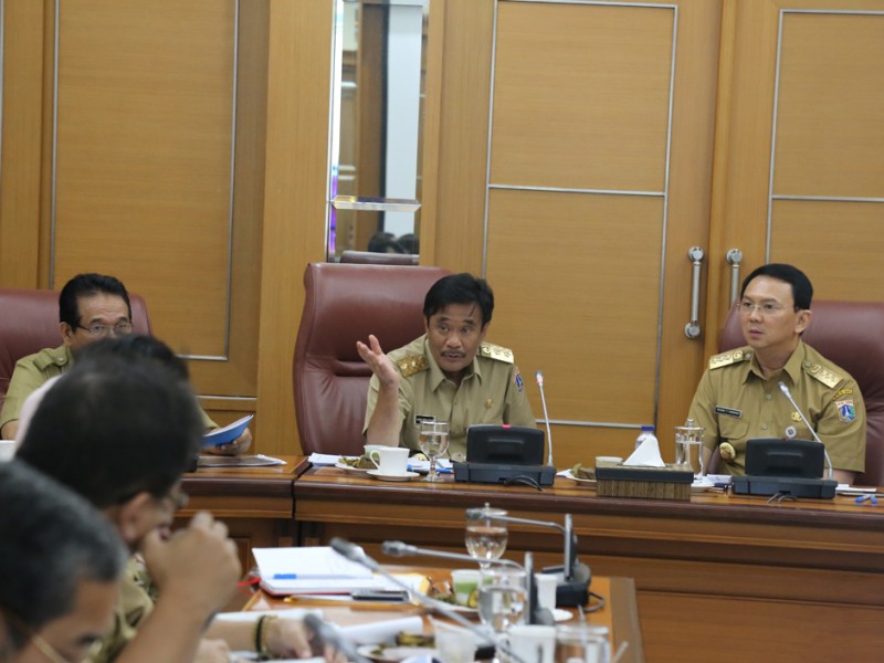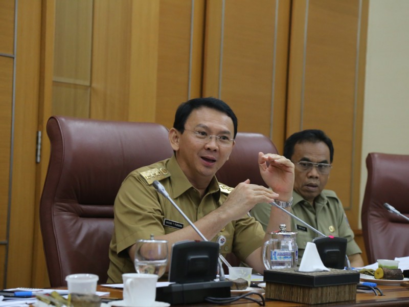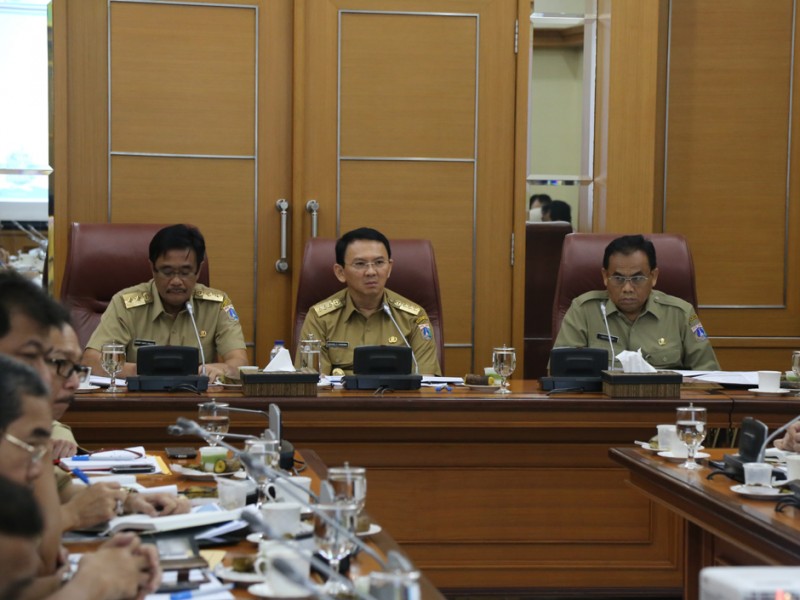 Gubernur DKI Jakarta, Basuki Tjahaja Purnama memimpin rapat bersama jajaran Satuan Kerja Perangkat Daerah (SKPD) di Balai Kota DKI Jakarta, Senin