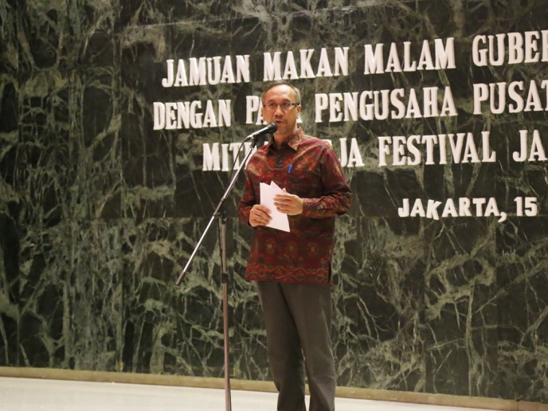 Kepala Dinas Pariwisata dan Kebudayaan Provinsi DKI Jakarta, Catur Laswanto menghadiri jamuan makan malam bersama para pengusaha pusat perbelanjaan, retail dan mitra kerja Festival Jakarta Great Sale (FJGS) Tahun 2016 di Balai Kota DKI Jakarta, Selasa (15/03). (Foto: Reza/beritajakarta.com)