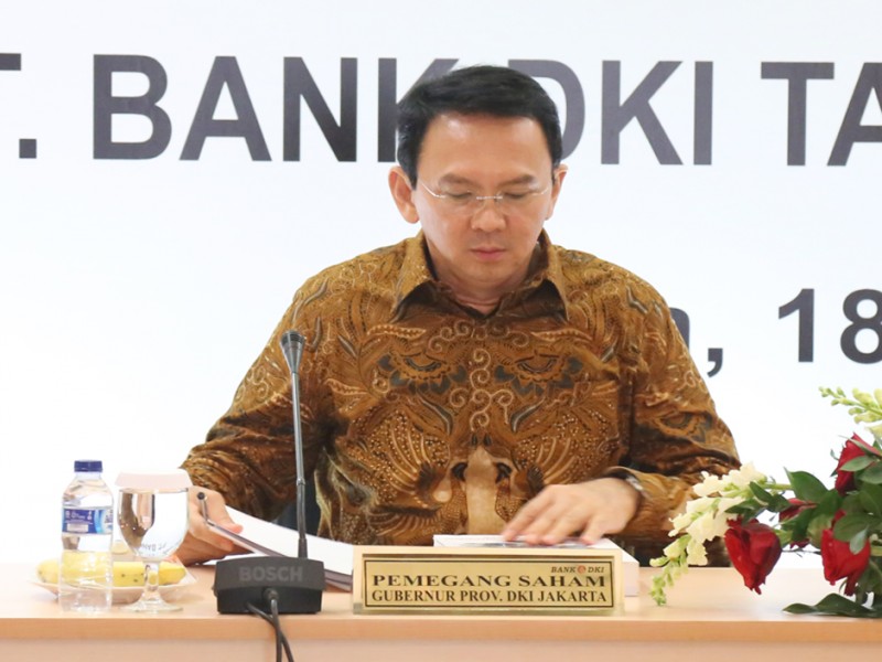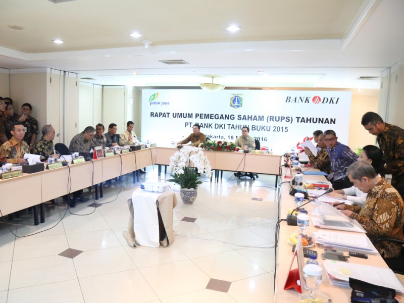 Gubernur DKI Jakarta, Basuki Tjahaja Purnama memimpin Rapat Umum Pemegang Saham (RUPS) Tahunan PT. Bank DKI Tahun Buku 2015 di Kantor Pusat Bank DKI Jalan Ir.H. Juanda, Jakarta pusat, Jumat (18/03). Rapat dihadiri jajaran Komisaris dan Direksi PT Bank DKI dan berlangsung tertutup. (Foto: Reza/beritajakarta.com)