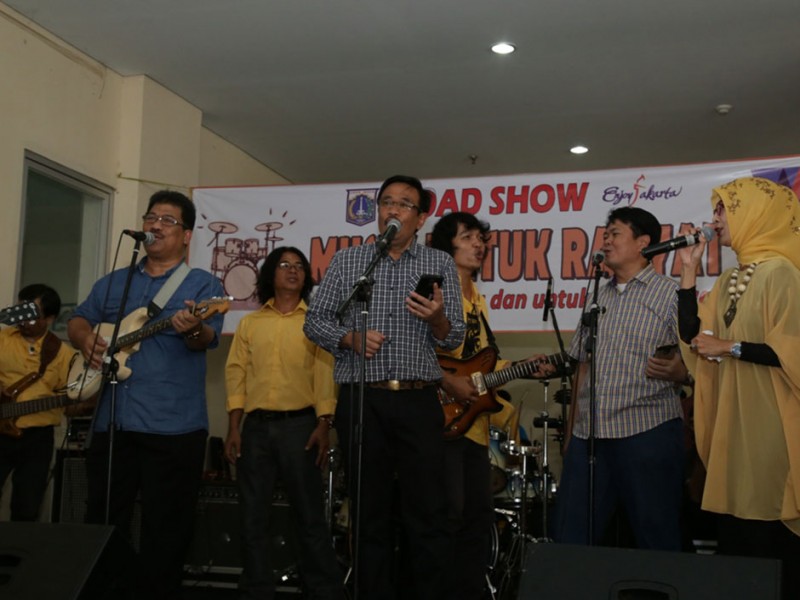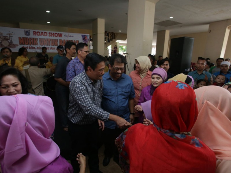 Gelaran Road Show Musik untuk Rakyat dihelat di Rumah Susun (Rusun) Jatinegara Barat Jalan Jatinegara Barat, Kelurahan Kampung Melayu, Kecamatan Jatinegara, Jakarta Timur, Sabtu (19/3/2016). Turut memberikan hiburan kepada para penghuni Rusun, Wakil Gubernur DKI Jakarta, Djarot Saiful Hidayat menyanyikan sejumlah lagu band legendaris Koes Plus, diantaranya, Bujangan dan Diana. Kegiatan ini cukup memberikan hiburan tersendiri bagi para penghuni Rusun yang mayoritas merupakan warga relokasi dari bantaran Kali Ciliwung.(Foto: Yopie/Beritajakarta.com)