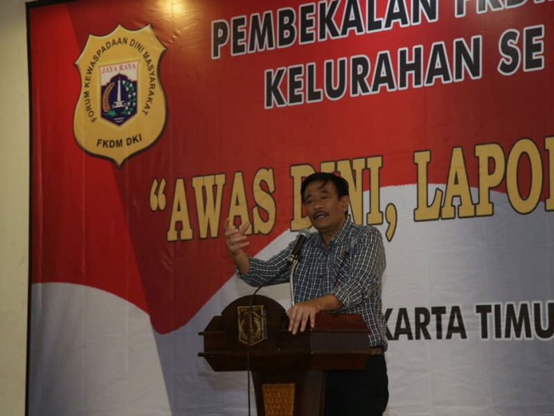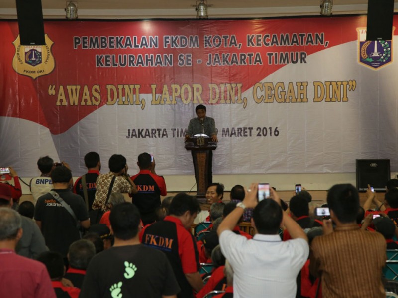 Wakil Gubernur DKI Jakarta, Djarot Saiful Hidayat membuka acara pembekalan kader Forum Kewaspadaan Dini Masyarakat (FKDM) se-Jakarta Timur, di Kantor Wali Kota Jakarta Timur, Sabtu (19/3/2016). Kader FKDM diharapkan mampu menjadi garda terdepan mencegah gangguan keamanan dan konflik terutama yang disebabkan isu SARA. Turut hadir dalam acara tetsebut, Wali Kota Jakarta Timur, Bambang Musyawardana serta Kepala Badan Kesatuan Bangsa dan Politik DKI Jakarta, Ratiyono. .(Foto: Yopie/Beritajakarta.com)