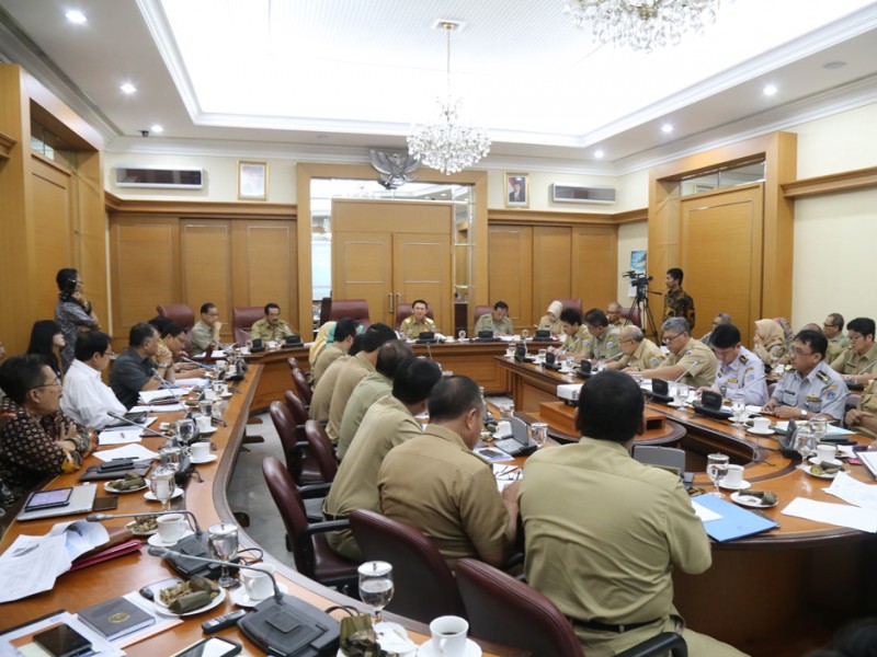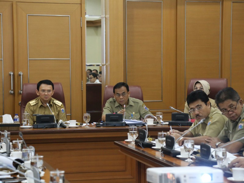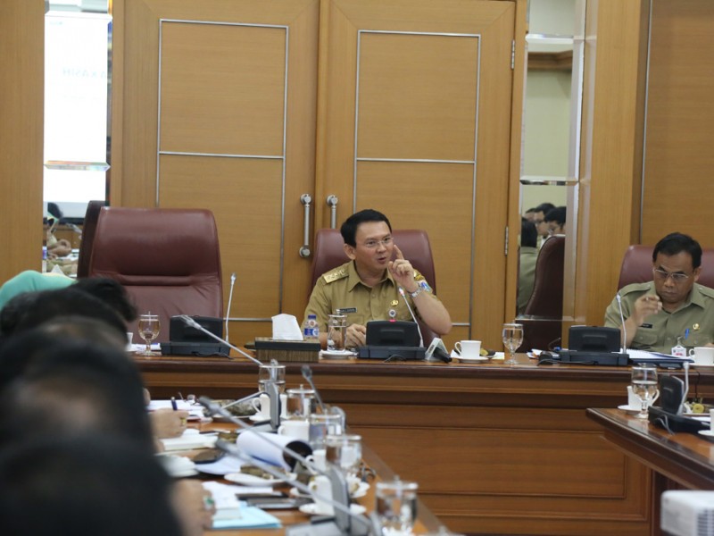 Gubernur DKI Jakarta, Basuki Tjahaja Purnama bahas ancaman flu burung di Ibukota dalam rapat bersama jajaran Satuan Kerja Perangkat Daerah (SKPD) di Balaikota DKI Jakarta, Senin (21/03).(Foto: Reza/beritajakarta.com)