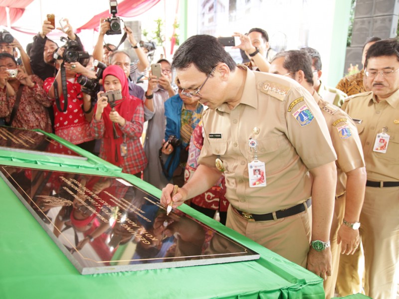 Gubernur DKI Jakarta, Basuki Tjahaja Purnama meresmikan renovasi Gedung Kantor Kelurahan Kenari, Kelurahan Gondangdia dan Gedung Blok D Kantor Wali Kota Jakarta Pusat di Kantor Kelurahan Kenari, Jakarta Pusat, Selasa (22/3). Peresmian dilkukan dengan penandatanganan prasasti. (Foto: Yopie/beritajakarta.com)