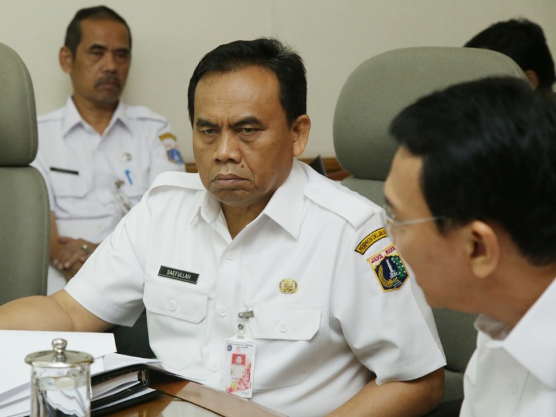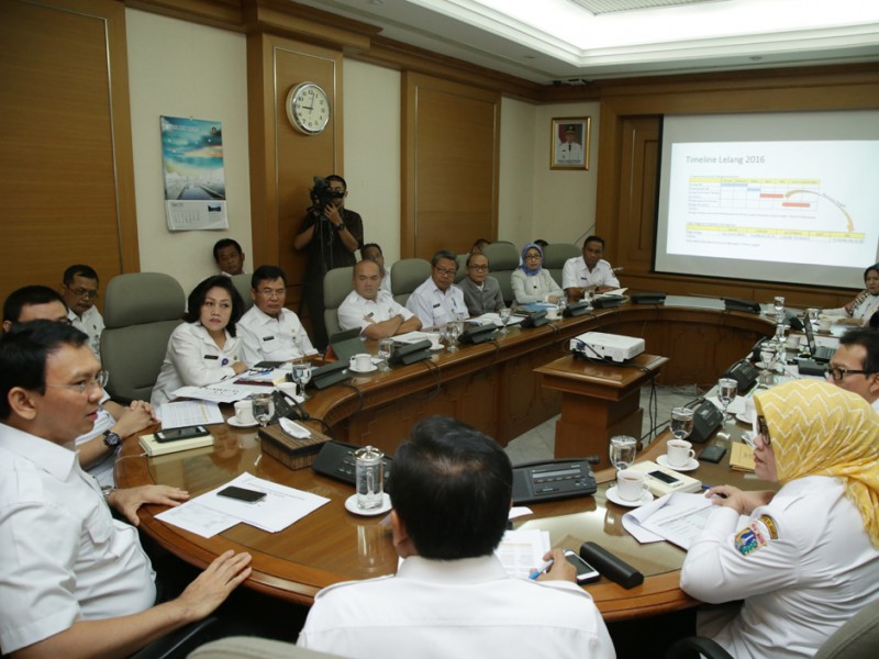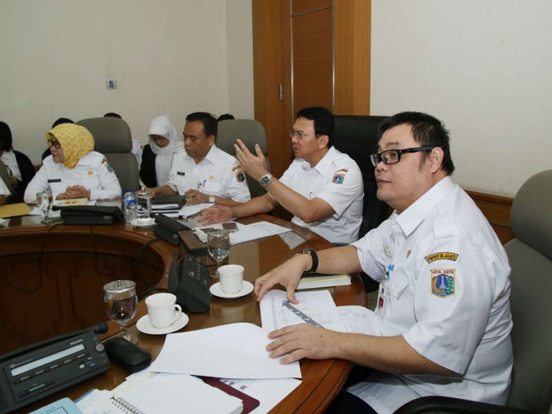 Gubernur DKI Jakarta, Basuki T Purnama menghadiri rapat koordinasi Kepastian Hukum pelaksanaan Lelang Konsolidasi yang dilaksanakan oleh SKPD/UKPD di Balaikota Jakarta, Rabu (23/3). Rapat ini turut dihadiri Sekretaris Daerah Provinsi DKI Jakarta, Saefullah, Kepala Badan Penyelenggaraan Pengadaan Barang dan Jasa DKI Jakarta, Blessmianda. (Foto: Yopie/Beritajakarta.com)