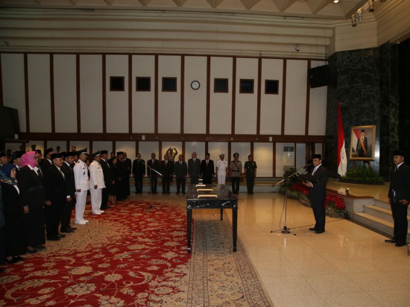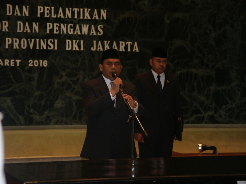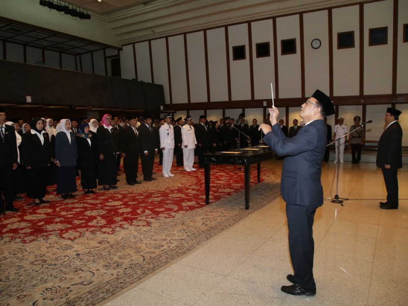 Sekertaris Daerah Provinsi DKI Jakarta, Saefullah melantik 124 pejabat eselon III dan eselon IV di Balai Kota DKI Jakarta, Rabu (23/3). Berdasarkan data dari Badan Kepegawaian Daerah DKI Jakarta terdapat 124 pejabat yang dilantik yang diantaranya 15 pejabat eselon III dan 109 pejabat eselon IV.(Foto: Reza /beritajakarta.com)