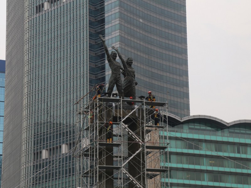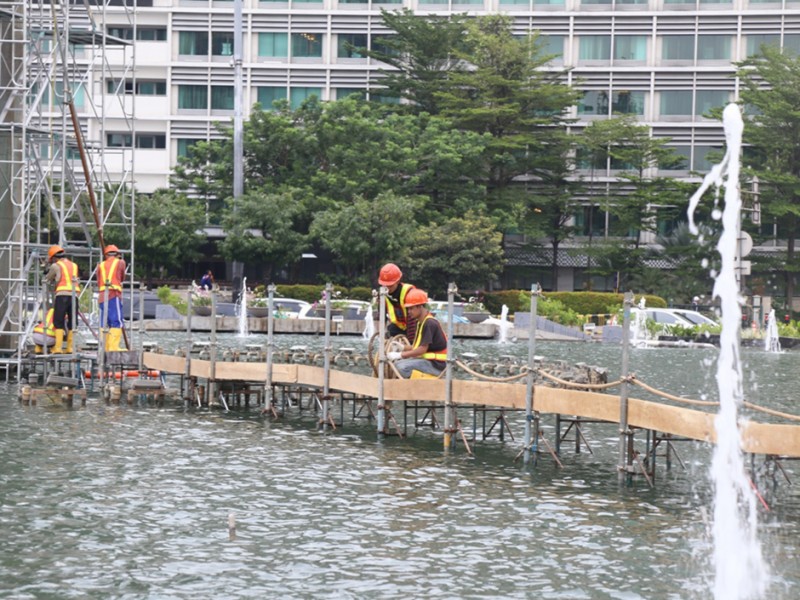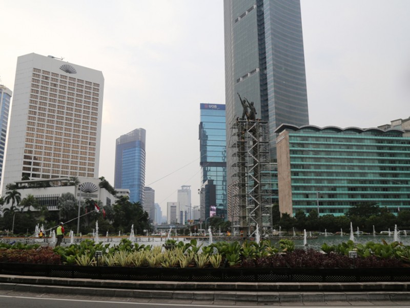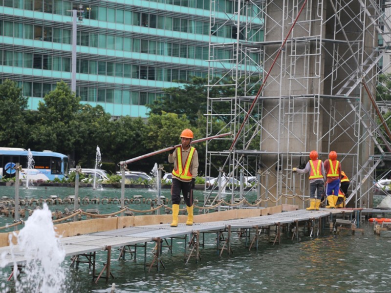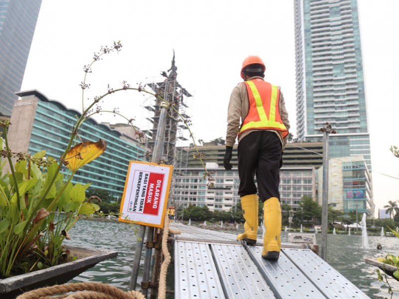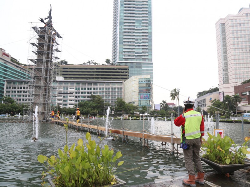Patung Selamat Datang Bundaran HI Dipasangi Kawat Penyangga Proyek MRT