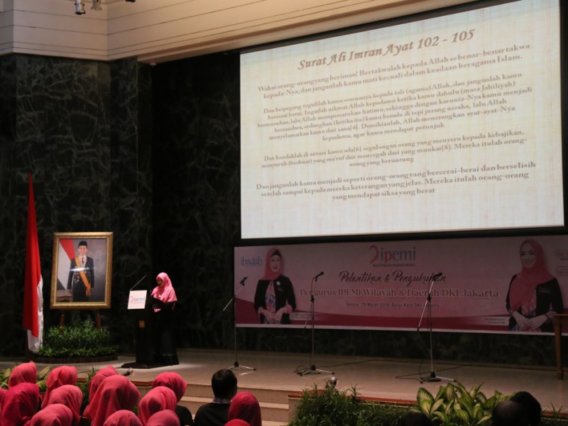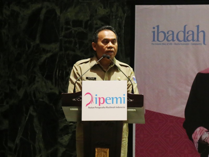 Sekretaris Daerah Provinsi DKI Jakarta, Saefullah menghadiri pelantikan pengurus wilayah dan cabang Ikatan Pengusaha Muslimah Indonesia (IPEMI) DKI Jakarta masa bakti 2015-2021 di Balai Kota, Selasa (29/03). (Foto: Reza/Beritajakarta.com)