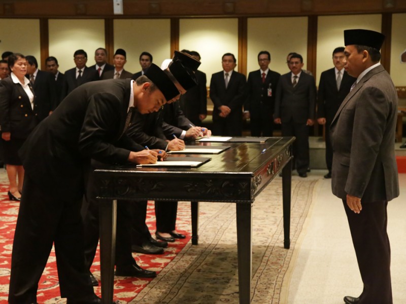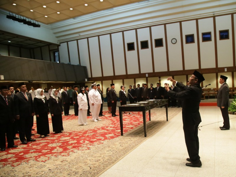 Sekertaris Daerah Provinsi DKI Jakarta, Saefullah kembali melantik sebanyak 46 pejabat eselon III dan eselon IV di Balai Kota DKI Jakarta, Rabu (30/3). Ke-46 pejabat yang dilantik yang diantaranya 13 pejabat eselon III dan 33 pejabat eselon IV. (Foto: Yopie/Beritajakarta.com)