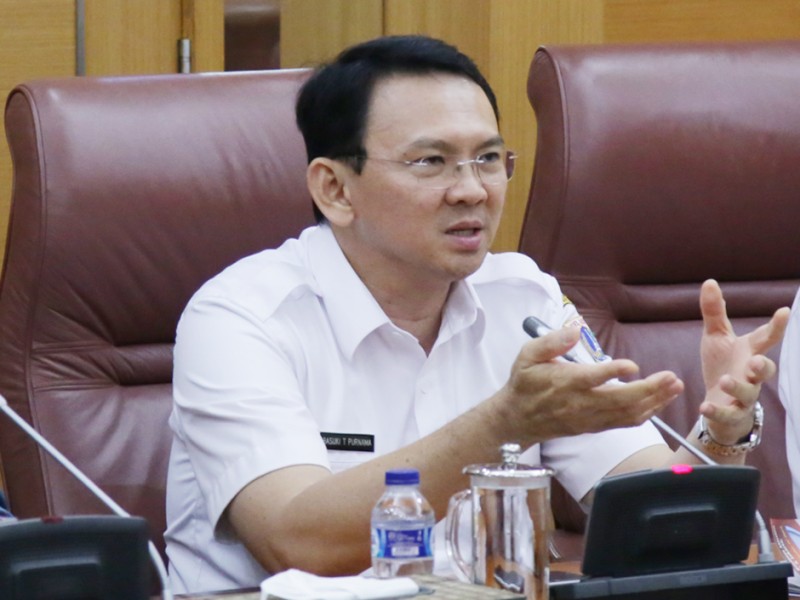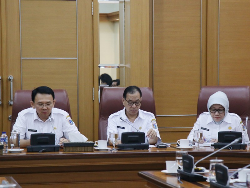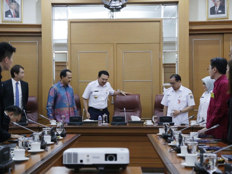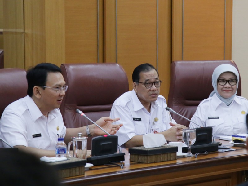 Gubernur DKI Jakarta, Basuki T Purnama, membahas bentuk kerjasama selaku konsultan bisnis untuk membantu pertumbuhan perekonomian di DKI Jakarta bersama delegasi bisnis Singapore Manufacturing Federation (SMF) di Balai Kota Jakarta, Rabu (30/3). Pertemuan ini dihadiri pula oleh Deputi Gubernur DKI Jakarta Bidang Industri, Perdagangan, dan Transportasi, Sutanto Soehodho dan Kepala Badan Perencanaan dan Pembangunan Daerah (Bappeda) DKI Jakarta, Tuty Kusumawati. (Yopie/beritajakarta.com)