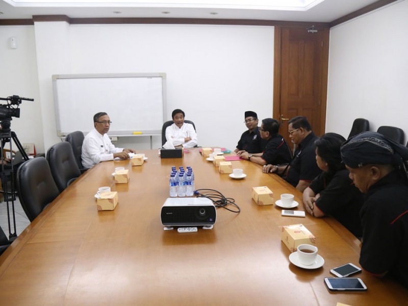 Wakil Gubernur DKI Jakarta, Djarot Saiful Hidayat bersama Komunitas Reog Ponorogo membahas pengembangan seni budaya Reog Ponorogo di Balai Kota DKI Jakarta, Kamis (31/03). Hadir dalam pertemuan ini Kepala Dinas Pariwisata dan Kebudayaan DKI Jakarta, Catur Laswanto, Sekretaris Komunitas Reog Ponorogo, Syaiful Jihad, Ketua Dewan Pembina Komunitas Reog Ponorogo, Suryo Muryono dan beberapa anggota Reog Ponorogo.(Foto: Reza/beritajakarta.com)