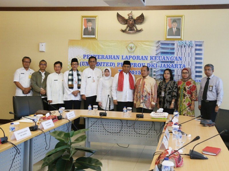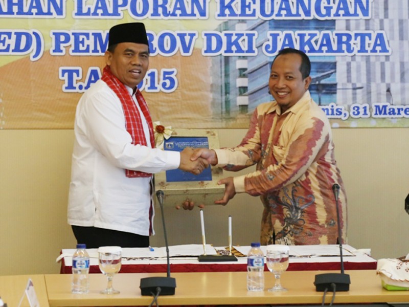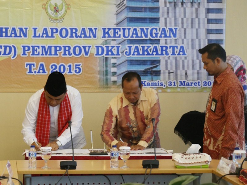 Sekretaris Daerah Provinsi DKI Jakarta, Saefullah menyerahkan Laporan Kinerja Pemerintah Daerah (LKPD) Provinsi DKI Jakarta Tahun Anggaran 2015 Ke Badan Pemeriksaan Keuangan (BPK) Republik Indonesia Perwakilan Provinsi DKI Jakarta, Kamis (31/03). (Foto: Reza/beritajakarta.com)