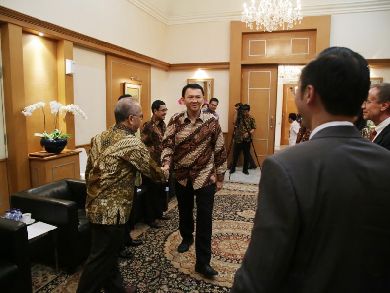 Gubernur DKI Jakarta, Basuki T Purnama, menerima perusahaan konsultan perbankan terkait penyusunan Corporate Plan Bank DKI Tahun 2016 - 2020 di Balai Kota Jakarta, Jumat (1/4). (Foto: Yopie/beritajakarta.com)