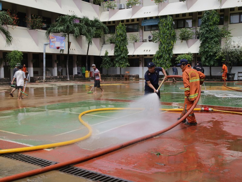 Basuki Tinjau Pembersihan SMAN 8