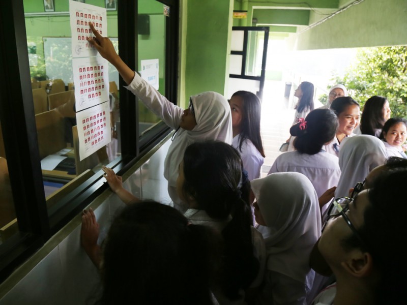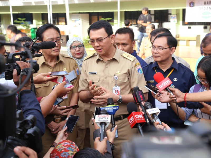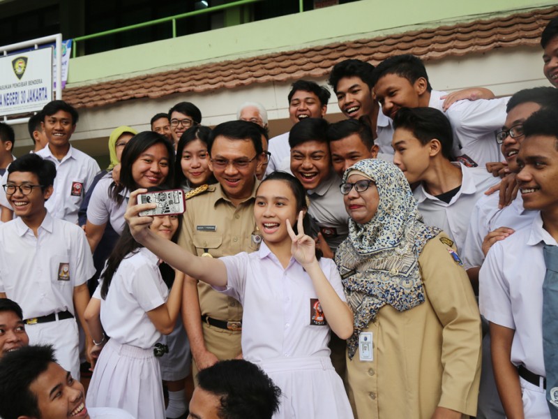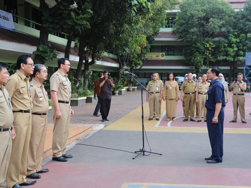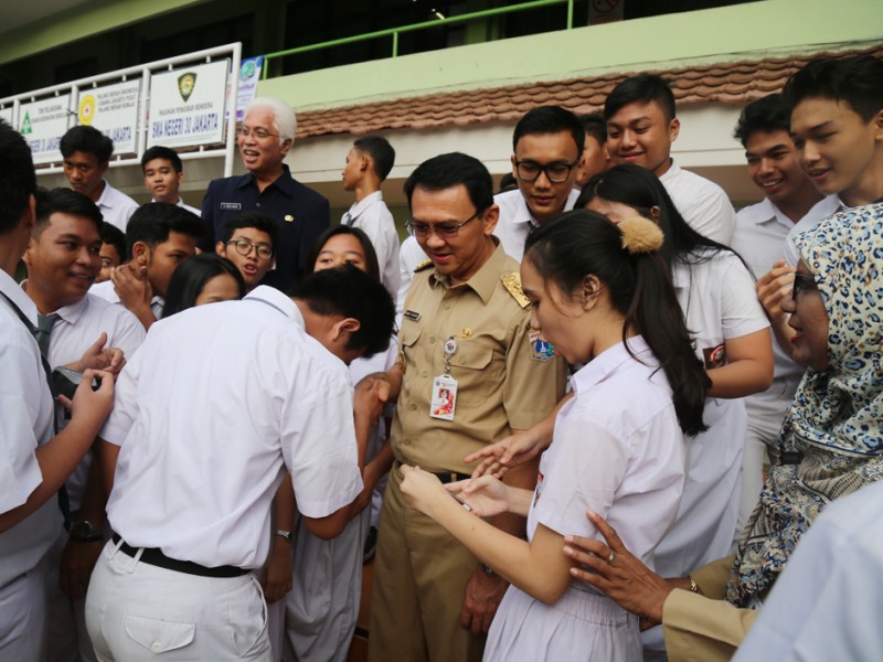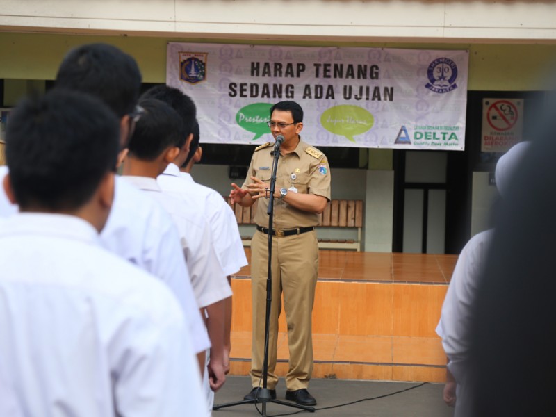 Gubernur DKI Jakarta, Basuki Tjahaja Purnama meninjau pelaksanaan Ujian Nasional (UN) hari pertama di SMAN 30, Jalan Jendral Ahmad Yani, Cempaka Putih, Jakarta Pusat, Senin (4/4). Dalam peninjauananya Basuki mengingatkan kepada peserta UN SMAN 30 untuk berdoa. (Foto: Reza/Beritajakarta.com)