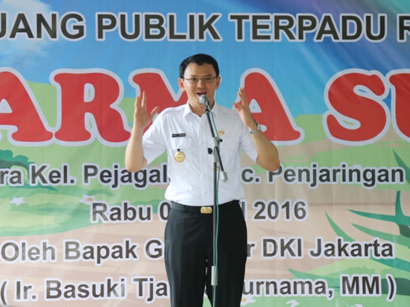 Gubernur DKI Jakarta, Basuki Tjahaja Purnama meresmikan Ruang Publik Terpadu Ramah Anak (RPTRA) Dharma Suci di Jalan Pluit Mas Utara, Kelurahan Penjagalan, Kecamatan Penjaringan Jakarta Utara, Rabu (06/04). (Foto: Reza/beritajakarta.com)